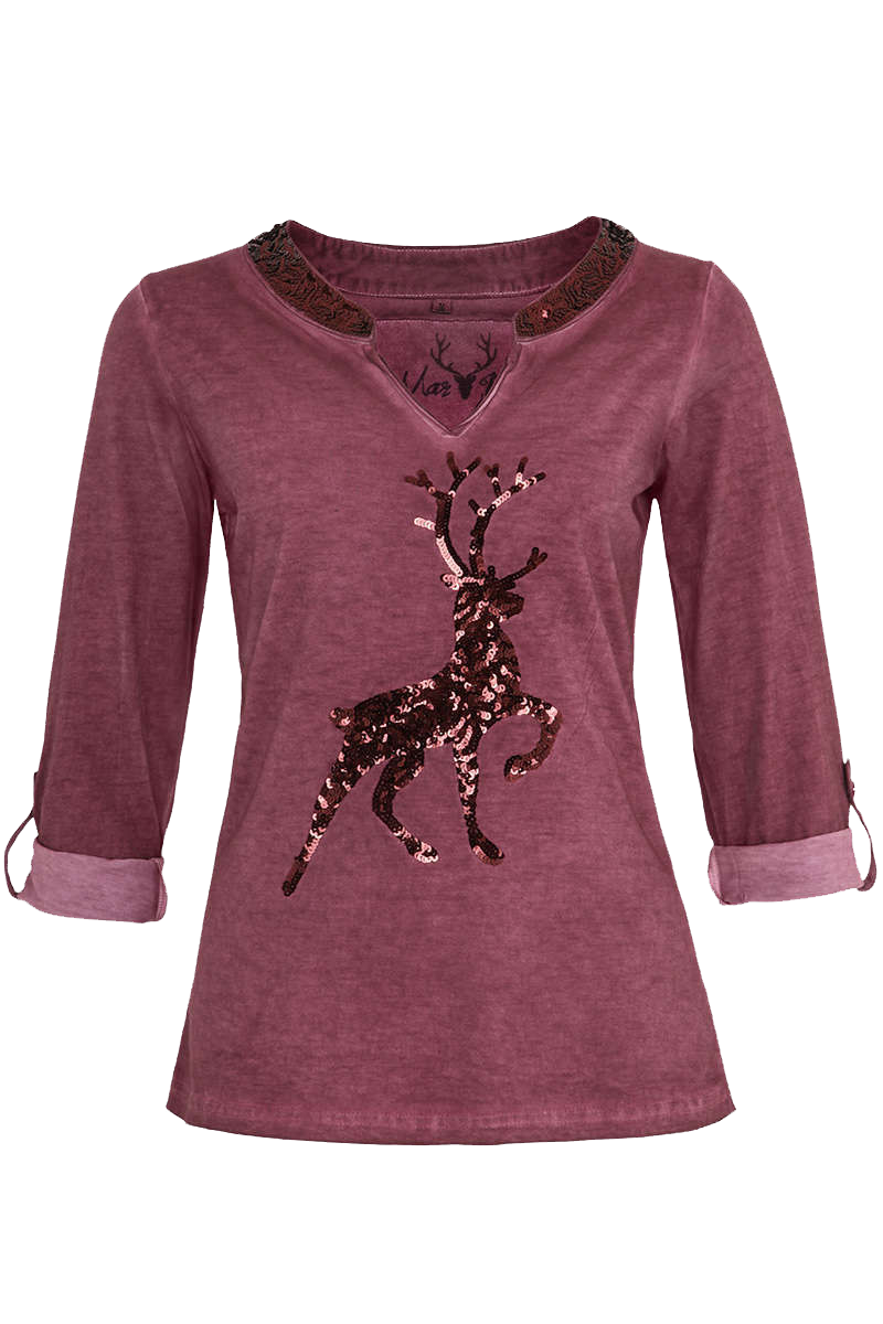 Damen Trachten-Shirt mit 3/4-Arm mit Pailetten-Applikationen