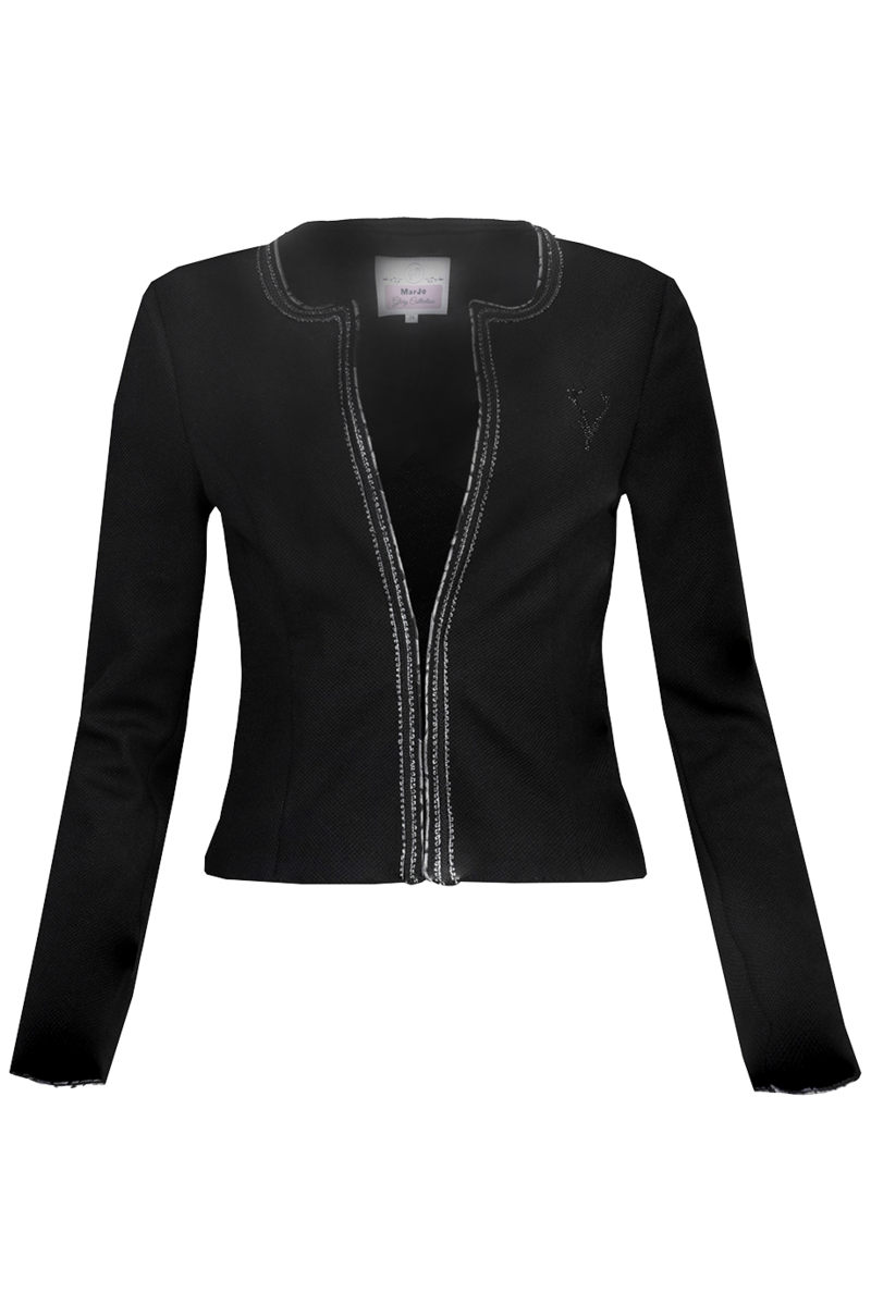 Der Trachtenblazer ASHLEY von Marjo in klassischem Schwarz ist ein stilvoller Begleiter mit dezenten Glitzerdetails und einem eleganten Design. Die Jacke wird durch Haken und Ösen geschlossen, wobei sich eine edle Borte neben dem Verschluss bis um den V-Ausschnitt zieht und so eine feminine Note verleiht. Leicht tailliert geschnitten, passt die Jacke perfekt zu Damenlederhosen oder Trachtenröcken und macht sich auch im Alltag zur Jeans hervorragend. Ein vielseitiges Lieblingsstück für den Kleiderschrank.
