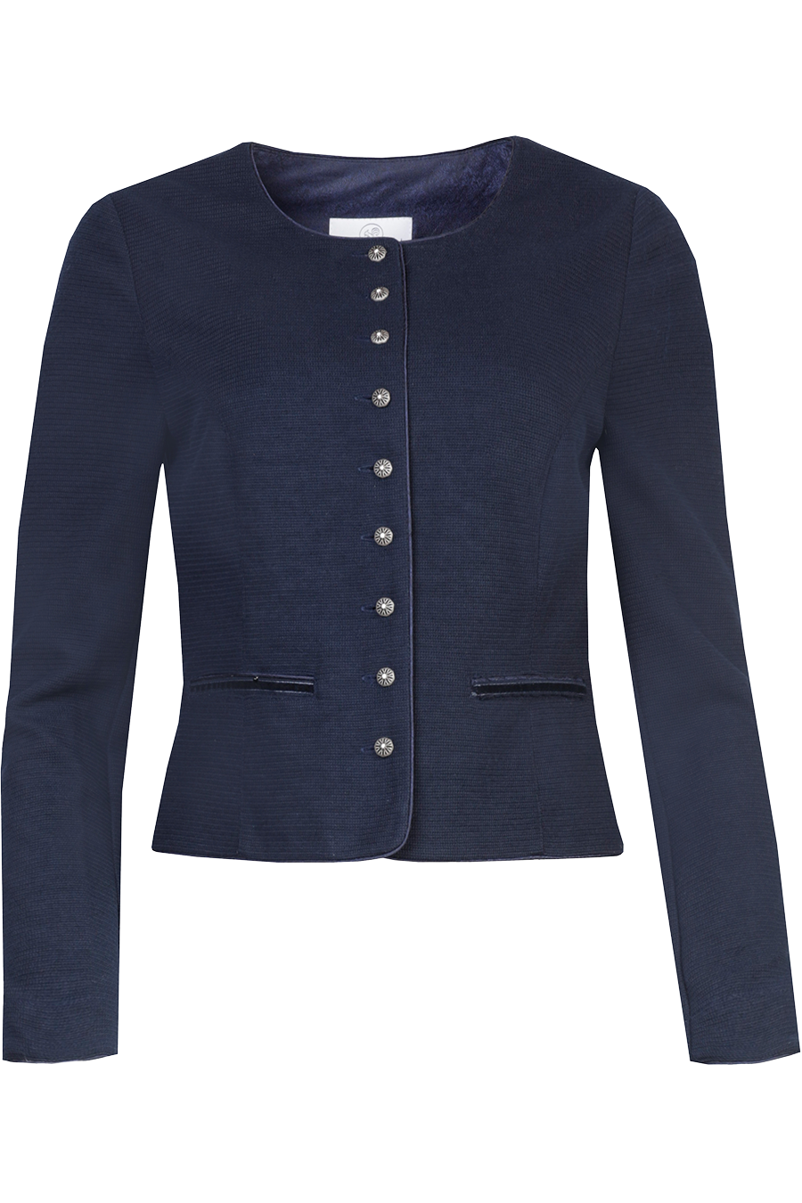 Der kurze, taillierte Schnitt schmeichelt der Figur und lässt sich wunderbar mit Dirndl, Rock oder Trachtenhose kombinieren. Der Rundhalsausschnitt und die edlen, verzierten Knöpfe auf der Vorderseite unterstreichen den klassischen Look. Das Vorderteil ist innen hochwertig abgefüttert und bietet ein angenehmes Tragegefühl.