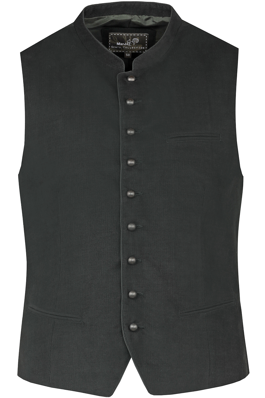 Die stilvolle Herrenweste KIRCHDORF von Marjo überzeugt mit ihrem weichen Feincord aus 100 % Baumwolle und einem klassischen Stehkragen. Halb-kugelförmige Metallknöpfe setzen elegante Akzente. Drei Paspeltaschen runden das Vorderteil funktional und optisch ab.