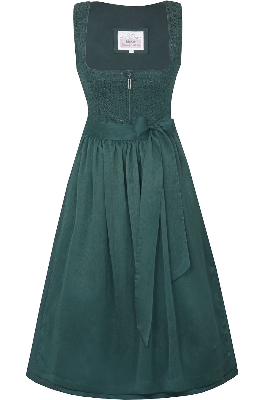 Zauberhaftes Midi-Dirndl GAIMERSHEIM von MarJo vereint elegante Stoffe und raffinierte Details zu einem festlichen Hingucker. Das Miederoberteil im edlen Bouclé-Look ist mit einem geometrischen Muster veredelt und erhält durch fein eingearbeitete schwarze Lurexfäden schimmernde Glitzereffekte. Sauber abgefüttert aus 100% Baumwolle, mit abgepaspeltem eckigem Ausschnitt und Armausschnitten, sorgt es für perfekten Sitz und hohen Tragekomfort.