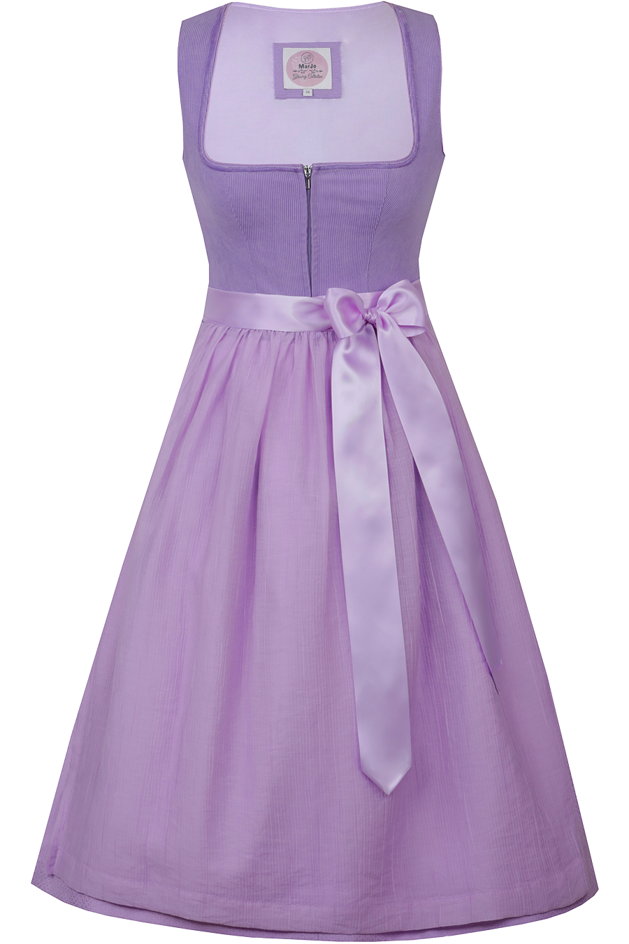 Die gemusterte Schürze im Streifendesign ergänzt das unifarbene Dirndl perfekt. Satinähnliche Schürzenbänder lassen sich zu einer eleganten Schleife binden und runden den Look stimmig ab.