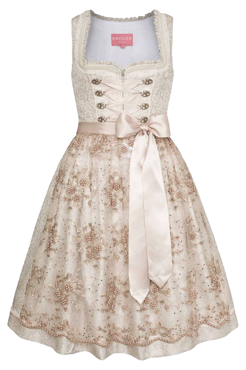 Mini-Dirndl mit transparenter Schürze und Perlen