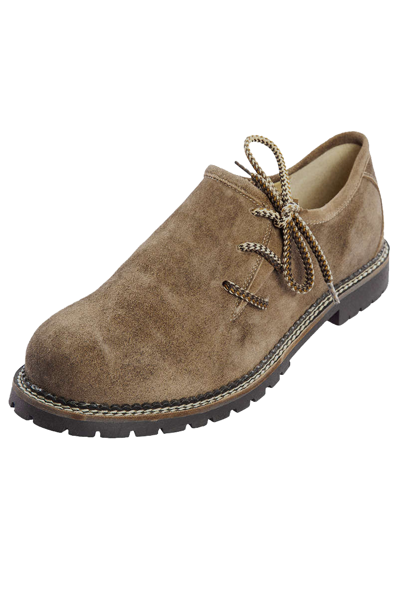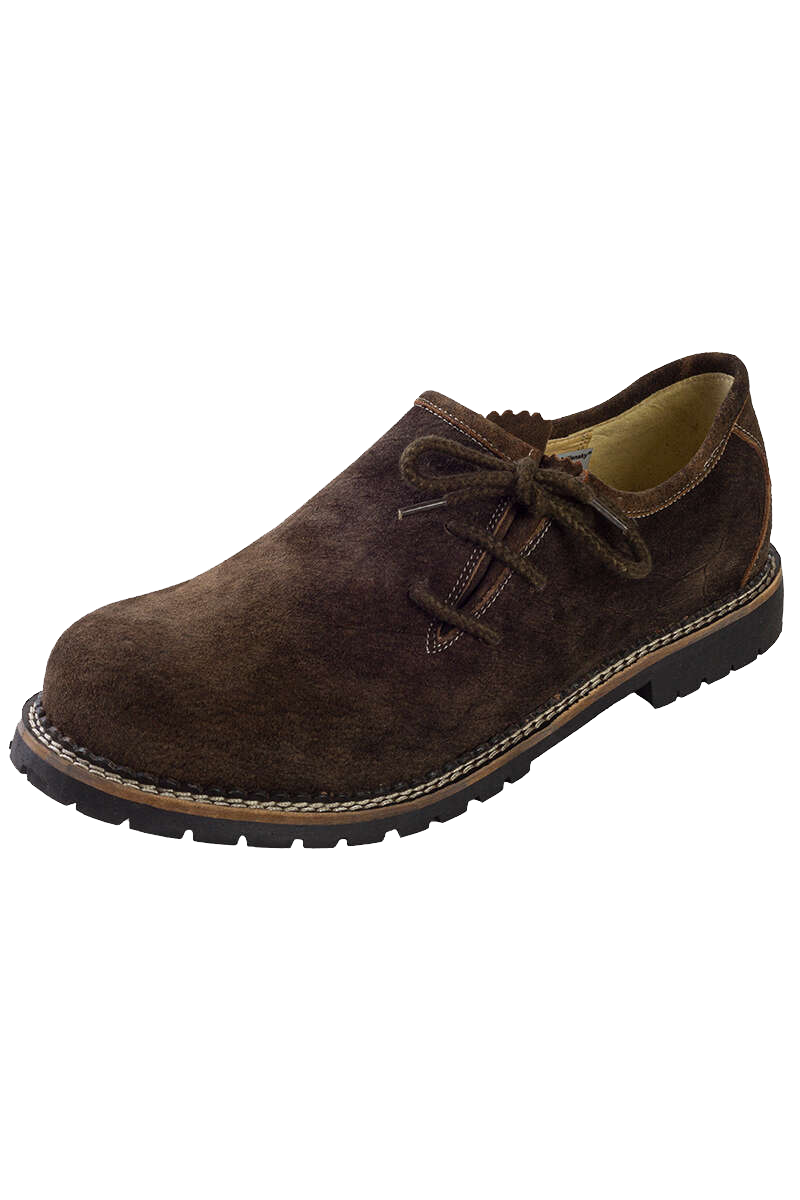 Authentischer und zeitloser Haferlschuh aus braunem Veloursleder mit profilierter Gummisohle von Spieth & Wensky. Er wird seitlich mit einer rustikalen beigen Kordel geschnürt. Die Zunge ist gefaltet und gezackt. Der Schuh ist aus echtem Veloursleder gefertigt und bietet daher einen angenehmen Tragekomfort.