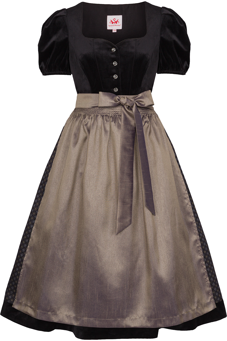Das Midi-Dirndl GÖTTIN von Spieth & Wensky kombiniert edle Materialien mit modernen Akzenten und liegt damit absolut im Trend. Das taillierte Mieder aus Samt ist mit klassischen Wiener Nähten gearbeitet und formt eine feminine Silhouette. Der herzförmige Ausschnitt ist fein paspeliert und setzt das Dekolleté stilvoll in Szene. Geschlossen wird das Dirndl vorne mit altsilberfarbenen Knöpfen, die mit funkelnden Strasssteinen geschmückt sind.