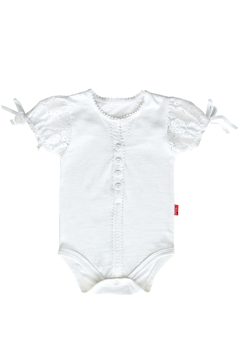 Mädchen Baby Body weiß mit Spitzenpuffärmel