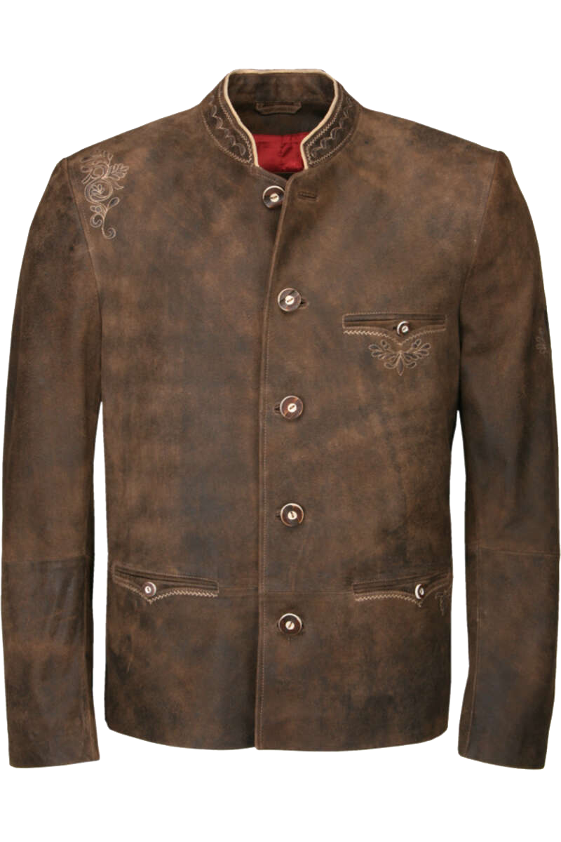 Hochwertige Lederjacke aus weichem Wildbockleder mit aufwändiger Stickerei. Das angenehme Nappa-Crash-Leder bietet einen hohen Tragekomfort. Die Jacke ist mit 3 Innentaschen ausgestattet. Der Rücken der Herrenjacke ist im Schulterbereich ebenfalls mit einer ausgeblasenen (plastischen) Stickerei verziert.
