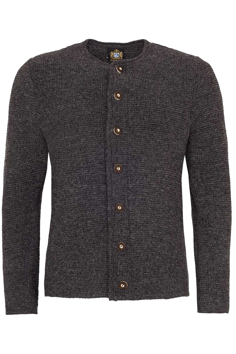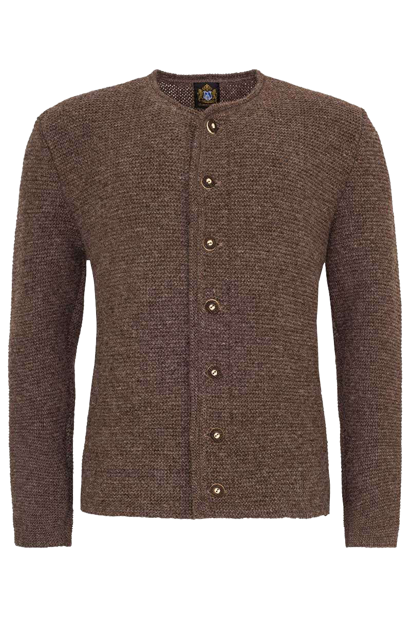 Ein absoluter Klassiker, der niemals seine Wertigkeit und Daseinsberechtigung verlieren wird. Diese dunkelbraune Herren-Strickjacke ist im klassischen Links-Links-Strick gearbeitet. Die Wolle der Jacke ist 100 % Schurwolle. Abgerundet wird das harmonische Erscheinungsbild der Jacke durch die großen Knöpfe in Hirschhornoptik.