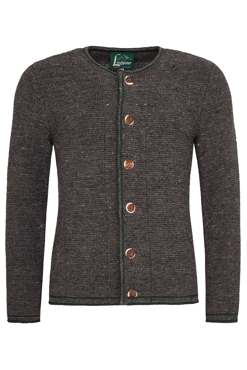 Mit dieser mittelgrauen melierten Herren Trachtenjacke aus 100% Schurolle von Litzlfelder hollt "Mann" sich einen absoluten Klassiker ins Haus. Die Jacke ist sehr hochwertig verarbeitet und mit viel Liebe zum Detail in Bayern designt und gefertigt. Der gerade und zeitlose Schnitt macht die Jacke zu einem Trachten-Klassiker. Der Halsausschnitt, der Bund der Jacke und die Ärmel und die Knopfleiste sind farblich abgesetzt in grün geziert. Zudem hat die Jacke eine abgesetzte, rechtsgestrickte Rückennaht. Die vielen handgearbeiteten Details macht jede Strickjacke zum Unikat. Für ein besonderes Tragegefühl wurde feinste Schurwolle aus Deutschland und Österreich verwendet. Abgerundet wird das harmonische Erscheinungsbild der Jacke durch die großen Knöpfe in Hirschhornoptik.