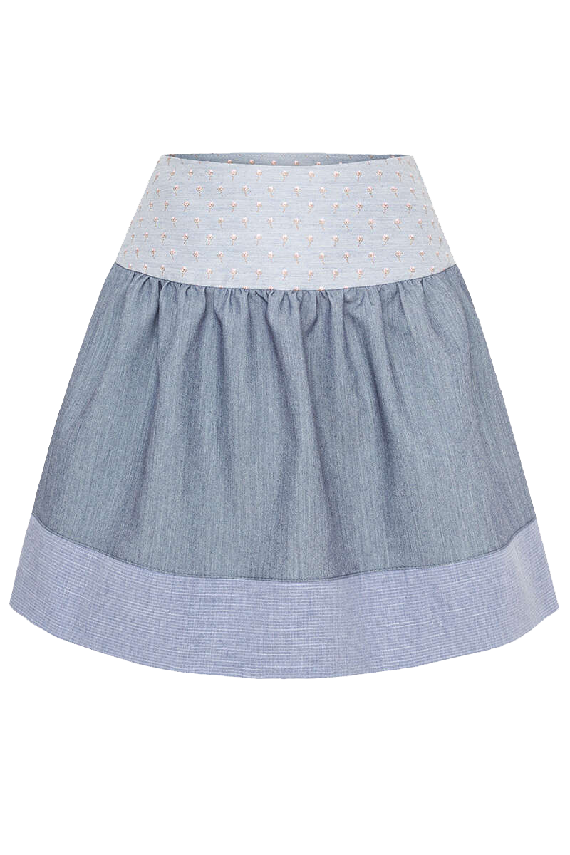 Dieser frische kurze Kinder-Trachtenrock von Berwin & Wolff in hellblau im angesagten Rockmacher-Stil liegt voll im Trend und lässt sich vielseitig kombinieren. Während der 9 cm breite Bund ein feines Blümchenmuster aufweist, besteht der Rock aus einfarbigem hellem jeansblau. Der Rocksaum schließt mit einem 6,5 cm breiter Zierstreifen aus hellblauem Stoff mit feinen Streifen ab. Gibt es bei uns auch in Damengrößen!