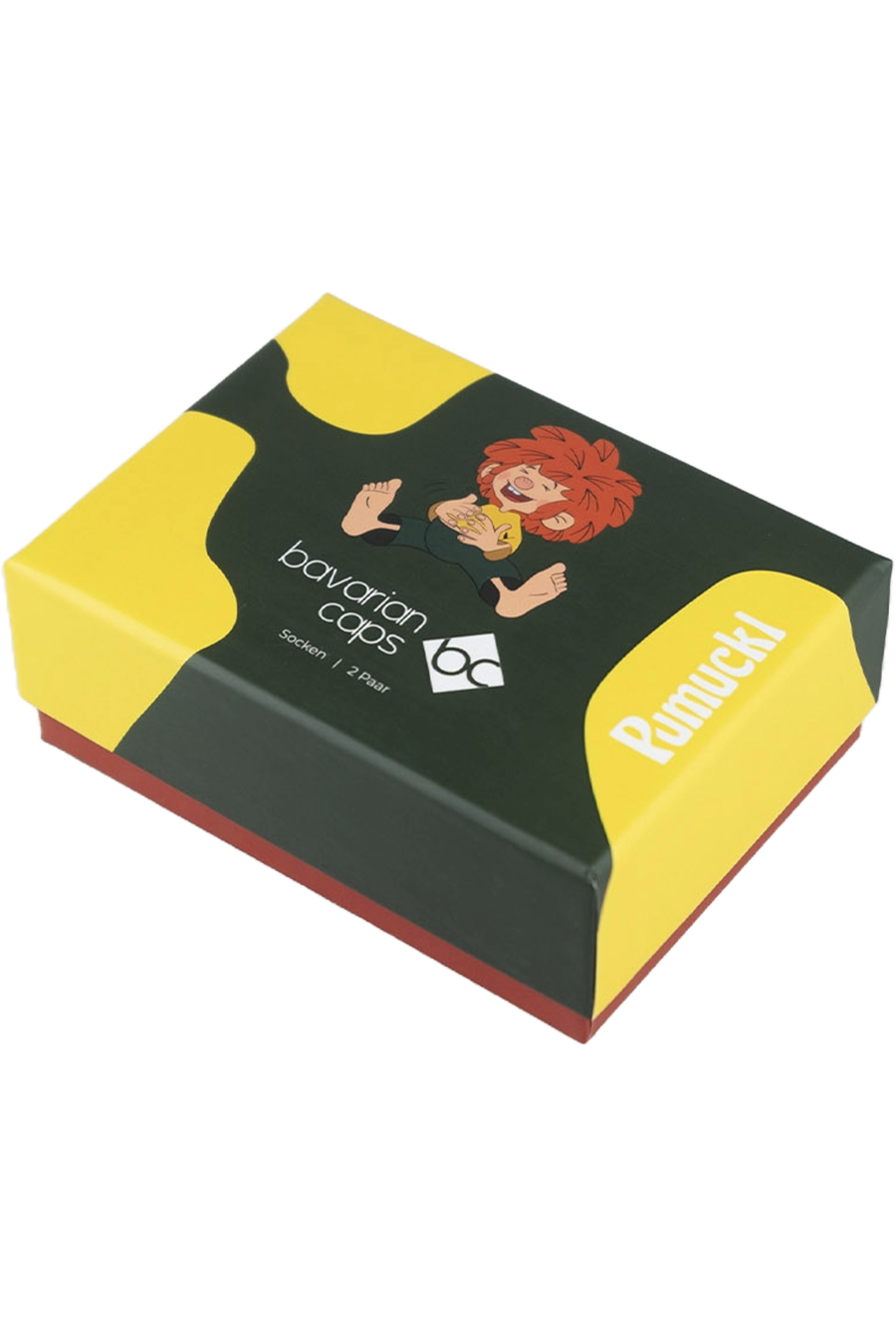 Hurra – den Pumuckl gibt’s jetzt auch für die Füße! Die Unisex Sockenbox PUMUCKL von Bavarian Caps enthält 2 Paar Socken: Ein Paar zeigt den lustigen Klabautermann, das andere Paar den grantigen – ein perfektes Duo für echte Pumuckl-Fans.