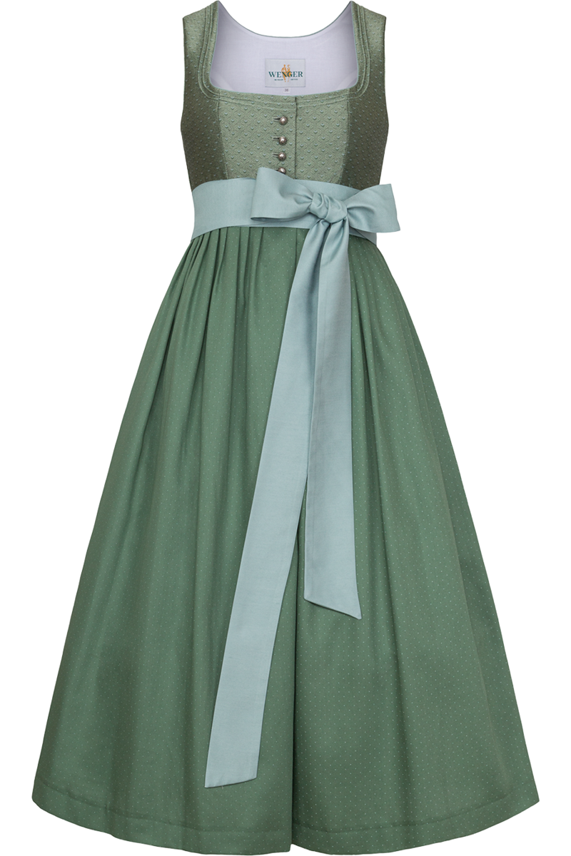 Das Umstandsdirndl SIBYLLE aus der Wenger-Kollektion bietet werdenden Müttern die perfekte Kombination aus Tradition und stilvoller Eleganz. Der speziell angepasste Schnitt sorgt dafür, dass der Babybauch bequem Platz findet und gleichzeitig schön in Szene gesetzt wird.Das schilffarbene Mieder mit feinem Blumenmuster strahlt schlichte Raffinesse aus. Dekolleté und Ärmelausschnitte sind mit feinen Paspeln eingefasst, während die klassischen Wiener Nähte eine schöne Silhouette formen. Die altsilberfarbenen Kugelknöpfe setzen mit ihrer filigranen Verzierung einen traditionellen Akzent und runden das edle Design des Mieders ab.Der gepunktete Rock, der in Falten gelegt ist, sorgt mit seiner Länge von 86 cm für einen stilvollen Auftritt zu jeder Gelegenheit. Ein besonderes Detail ist die 6 cm breite Schleife in hellblau, die das Dirndl modern akzentuiert und anstelle einer Schürze über dem Babybauch gebunden wird.Dank des Baumwollstoffs ist das Dirndl besonders angenehm zu tragen, wodurch es sich ideal für verschiedene Anlässe eignet - egal zu welcher Jahreszeit. Die Dirndlbluse India 1043500 ist die genau passende Dirndlbluse zum Dirndl. Es passen jedoch auch viele andere Dirndlblusen zu unseren Umstanddirndln.