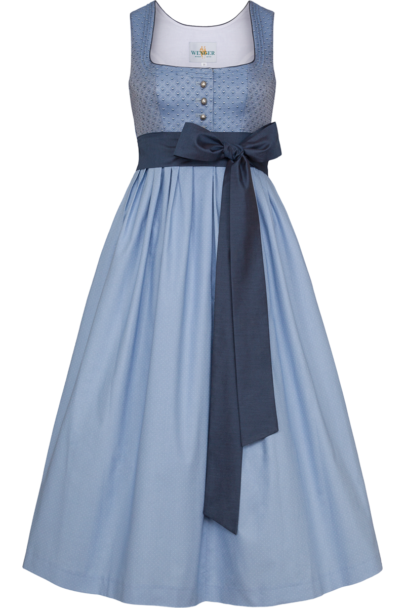 Das Umstandsdirndl SIBYLLE aus der Wenger-Kollektion bietet werdenden Müttern die perfekte Kombination aus Tradition und stilvoller Eleganz. Der speziell angepasste Schnitt sorgt dafür, dass der Babybauch bequem Platz findet und gleichzeitig schön in Szene gesetzt wird.Das hellblaue Mieder mit feinem Blumenmuster strahlt schlichte Raffinesse aus. Dekolleté und Ärmelausschnitte sind mit feinen Paspeln eingefasst, während die klassischen Wiener Nähte eine schöne Silhouette formen. Die altsilberfarbenen Kugelknöpfe setzen mit ihrer filigranen Verzierung einen traditionellen Akzent und runden das edle Design des Mieders ab.Der gepunktete Rock, der in Falten gelegt ist, sorgt mit seiner Länge von 86 cm für einen stilvollen Auftritt zu jeder Gelegenheit. Ein besonderes Detail ist die 6 cm breite Schleife in dunkelblau, die das Dirndl modern akzentuiert und anstelle einer Schürze über dem Babybauch gebunden wird.Dank des Baumwollstoffs ist das Dirndl besonders angenehm zu tragen, wodurch es sich ideal für verschiedene Anlässe eignet - egal zu welcher Jahreszeit. Die Dirndlbluse India 1043500 ist die genau passende Dirndlbluse zum Dirndl. Es passen jedoch auch viele andere Dirndlblusen zu unseren Umstanddirndln.