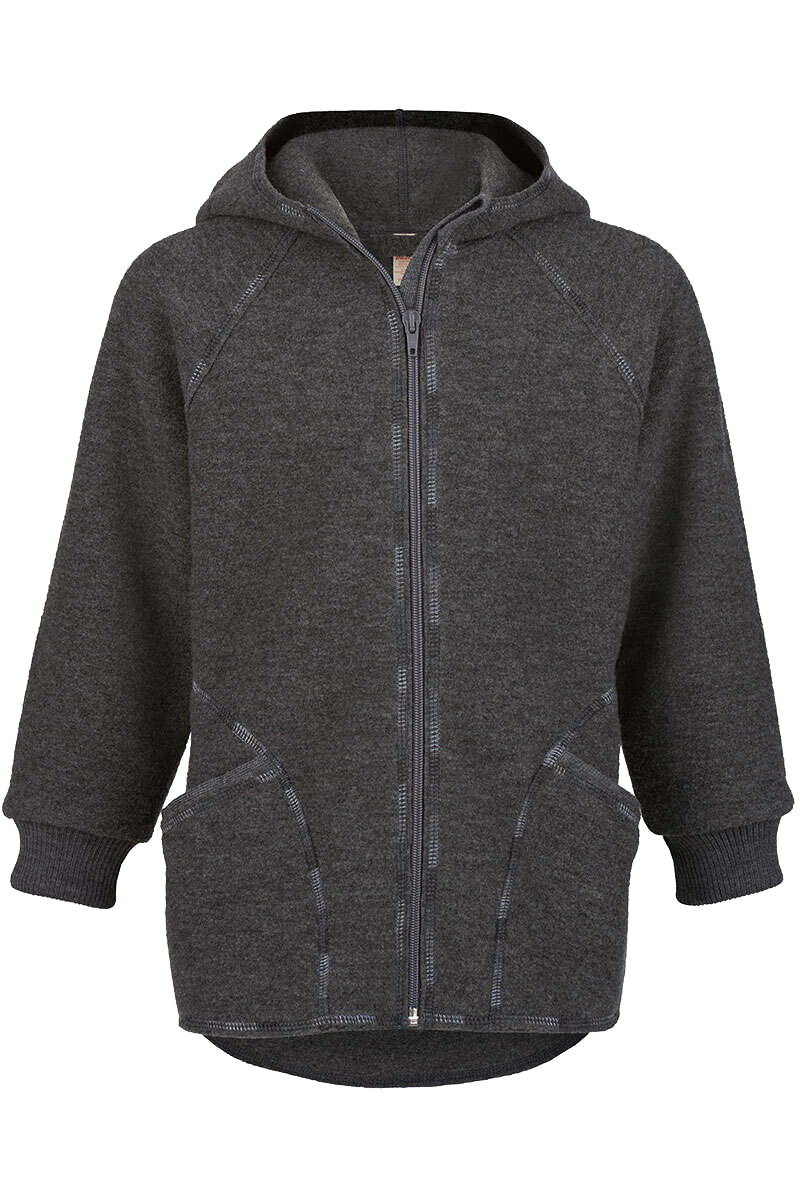 Diese schöne anthrazite Baby- und Kleinkind-Walkjacke mit Kapuze aus 100% biologischer Schurwolle (kontrolliert biologische Tierhaltung) vereint Modebewusstsein und Nachhaltigkeit. Sie hält unsere Kleinsten an kälteren Tagen schön warm und ist angenehm zu tragen, egal ob im Kinderwagen, beim spielen oder auf Spaziergängen. Da das reine Naturprodukt Schurwolle gleichzeitg wärmend und atmungsaktiv ist, wird übermäßiges Schwitzen verhindert. Besonders praktisch: Bei leichten Verschmutzungen kann die Jacke einfach ausgeschüttelt oder leicht ausgebürstet werden. Zum Einfassen der Jacke wurden auffällige breite Nähte mit leichten Farbschattierungen in grau verwendet, welche schöne Akzente setzen und der Jacke einen modernen Look ähnlich einem trendigen Kapuzen-Hoodie verleihen. Auch die angesagten Raglan-Ärmel und die praktischen aufgesetzten Eingriffstaschen unterstreichen diesen Stil und wurden mit der selben breiten Naht befestigt.Die Ärmelabschlüsse bestehen aus einem elastischem Ripp-Bündchen, durch das Kinderhände beim Anziehen leicht hindurchschlüpfen können und das die Kälte draußen hält.Diese trendige Jacke sieht nicht nur zur trachtigen Kleidung wunderschön aus, sondern macht auch jedes Alltagsoutfit ihres Lieblings zu einem echten Hingucker.Bitte Pflegehinweise beachten: Jacke nach dem Waschen feucht in Form ziehen, liegend trocknen, nicht auf der Heizung, bei Handwäsche nicht einweichen oder wringen, auf gleich bleibende Wassertamperatur achten, nach der Handwäsche in einem Handtuch ausdrücken.Die Jacke ist aus ökologischer Herstellung in Deutschland gefertigt und entspricht dem derzeit höchsten ökologischen Standard: Naturtextil - IVN zertifiziert BEST. Zudem GOTS und Grüner Knopf zertifiziert. Durch die nachhaltige Produktion der Firma Engel ist die Jacke völlig schadstofffrei.
