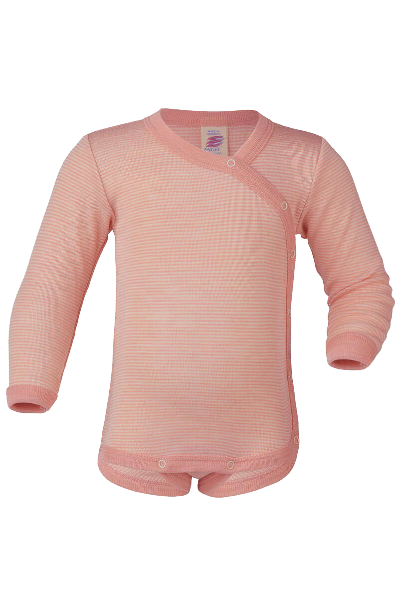 Der rosa-gestreifte Wickelbody hat durch seine Spitzenqualität aus Bio-Merinoschurwolle und Seide einen kuschelig seidigen Griff und sorgt für höchsten Tragekomfort bei Ihrem kleinen Liebling. Merinoschurwolle/Seide-Mischungen unterstützen ein gesundes Hautklima bei ihrem Baby und sind atmungsaktiv. Es kann Sommer wie Winter kein Wärmestau entstehen - der Body wärmt durch die Wolle im Winter und ist temperaturausgleichend im Sommer, die Seide sorgt für ein Wohlgefühl auf der Haut. Somit eignet sich der Body fürs ganze Jahr. Durch die Nickel-freien Druckknöpfe ist der Body auch für empfindliche Kinderhaut und Allergiker geeignet.Der Woll-Seide Body sorgt für ein langes Trageerlebnis über mehrere Kindergenerationen hinweg. Durch die Dehnfähigkeit des Materials ist der Body extrem weich, strapazierfähig und zudem noch bügelfrei.Besonders praktisch ist bei diesem Wickel-Body die seitliche Druckknopf-Leiste, welche es Ihnen ermöglicht, ihr Baby ganz einfach an zu ziehen, ohne mit dem Kopf durch den Body zu müssen.Diese Super-Allrounder in der Baby-Wäsche können mit kurzen Arm unter unsere Dirndl getragen werden, langärmlig unter unsere schönen Trachtenjacken, unter Overalls im Winter oder auch einfach im Alltag und zum Schlafen. Der Body ist aus ökologischer Herstellung in Deutschland gefertigt und entspricht dem derzeit höchsten ökologischen Standard: Naturtextil - IVN zertifiziert BEST. Zudem GOTS und Grüner Knopf zertifiziert.