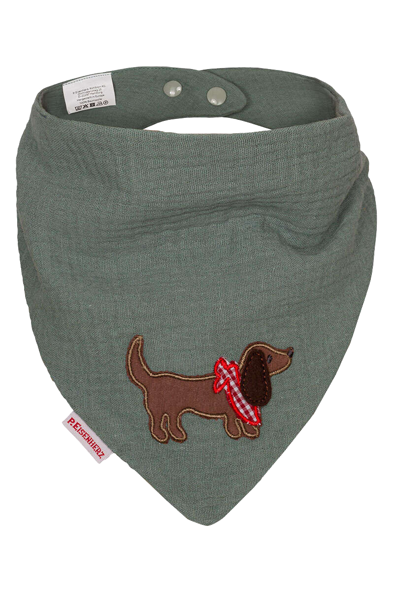 Dieses süße Dreieckstuch der Marke P.Eisenherz aus reiner Baumwolle ist ein Muss für unsere kleine Trachten- und Hundefans. Das salbeifarbene Tuch ist in Dreiecksform gearbeitet. Das Musselin fühlt sich besonders weich auf der Haut an und ist daher besonders angenehm zu tragen. Besonders niedlich ist das gestickte Motiv des Dackels, der passend dazu ein Tuch mit dem traditionellen weiß-roten Karomuster der Tracht trägt. Die Farbe ist sowohl für Mädchen als auch für Jungen geeignet. Das Tuch ist mit einem praktischen Druckknopf versehen, der sich in zwei verschiedenen Größen verstellen lässt.Dieses Produkt wurde in Europa hergestellt.