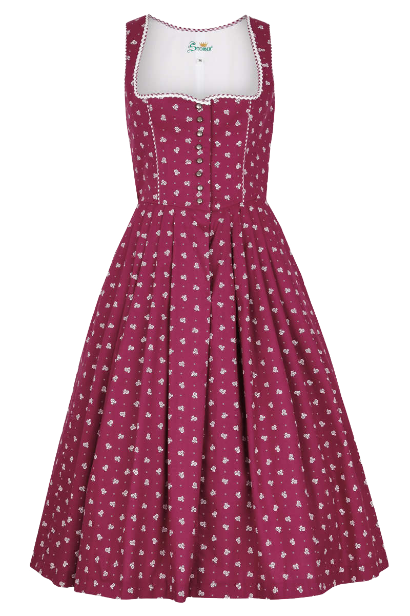 Die passenden karierten Schürzen du diesem Dirndl finden Sie unter der Artikel.nr. S118121-2-7 und S118121-1-7 in den Farben beere, marine, schwarz, grün und rot.In seiner schlichten Form ist dieses Dirndl bestens geeignet, wenn auch im Alltag Tracht gefragt ist. Oberteil und Rock sind einheitlich aus demselben Baumwollstoff in Beere mit aufgedruckten Rosen gefertigt. Der Ausschnitt wird von einer schlichten weißen Bordüre und einem Saum in kleinem Karo geschmückt. Die mittige, schlichte Knopfleiste wird ebenfalls von zwei karierten Leisten gesäumt. Der Rock ist ca. 70 cm lang und hat zwei Einschubtaschen.