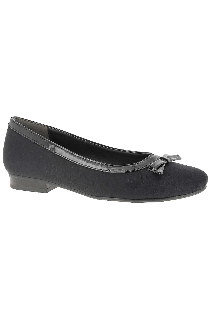 Die hübsche Trachten-Ballerina in Schwarz ist ein ideales Accessoire zum Dirndl. Die Schleife und die Einfassung in Lacklederoptik heben sich dezent vom übrigen Obermaterial aus Microfiber in Wildlederoptik ab. Mit der Absatzhöhe von 1,5 cm ist der Schuh sehr bequem zu tragen. Das Innenfutter ist aus Synthetik gefertigt.