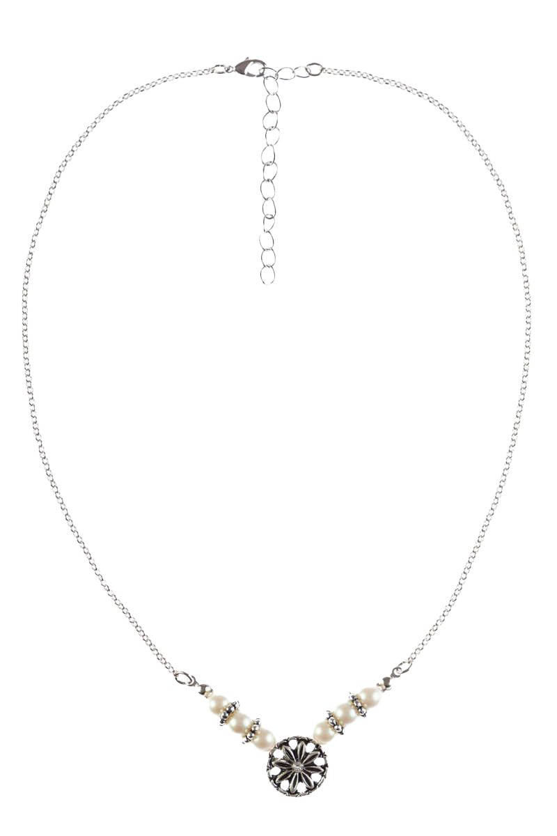 Damen Halskette mit Perlen und Blumen-Anhänger