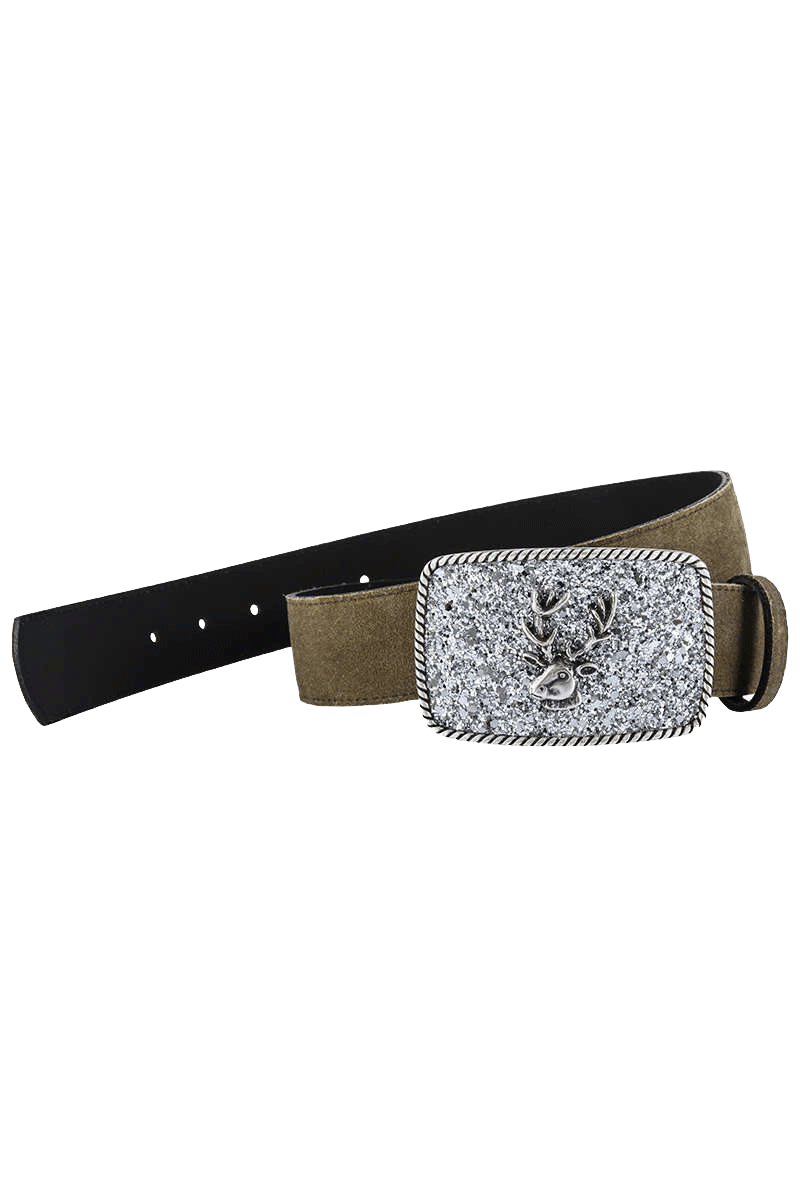 Damen-Leder-Gürtel Glitzer mit Hirschkopf