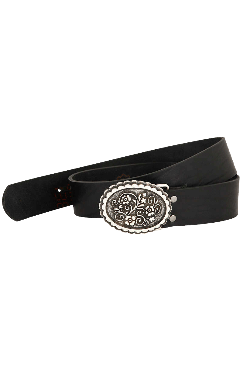 Dieser schicke Ledergürtel ist vielseitig kombinierbar. Die Schnalle hat eine ovale Form auf der ein schönes Blumenornament eingeprägt ist. Zur Lederhose, zur Jeans oder bei einem schönen Trachtenrock, hier liegen Sie immer richtig.