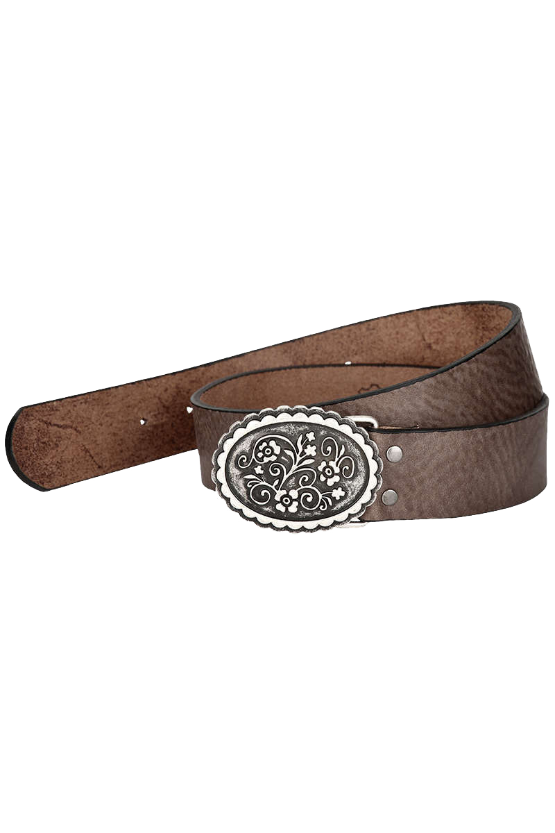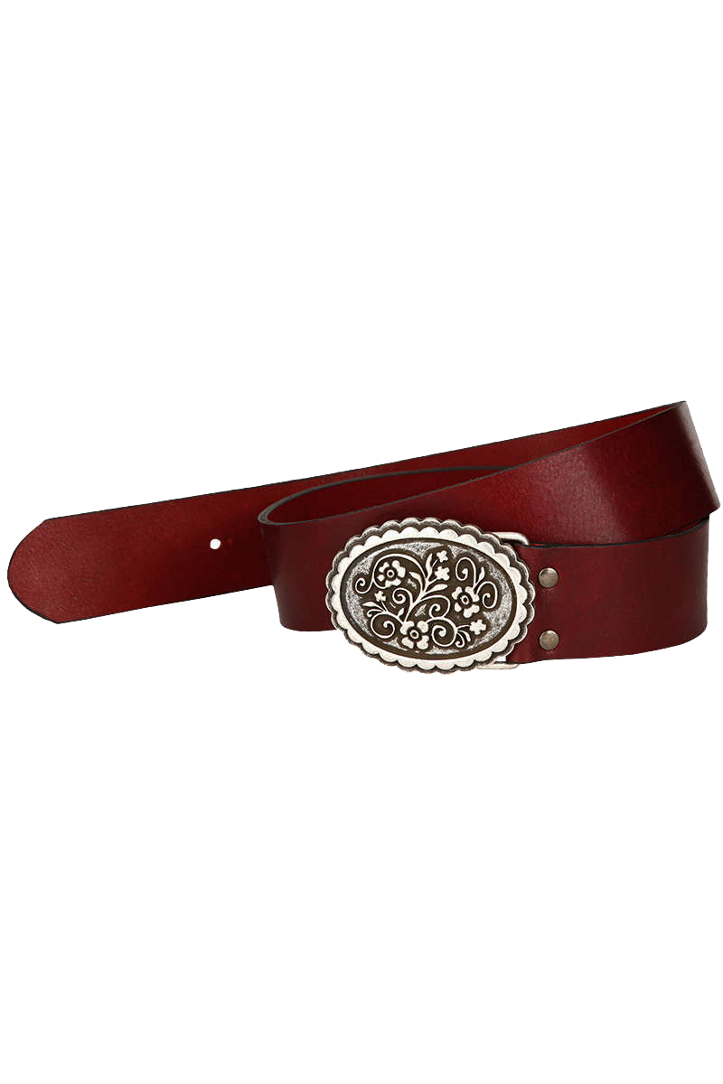 Dieser schicke Ledergürtel ist vielseitig kombinierbar. Die Schnalle hat eine ovale Form auf der ein schönes Blumenornament eingeprägt ist. Zur Lederhose, zur Jeans oder bei einem schönen Trachtenrock, hier liegen Sie immer richtig.