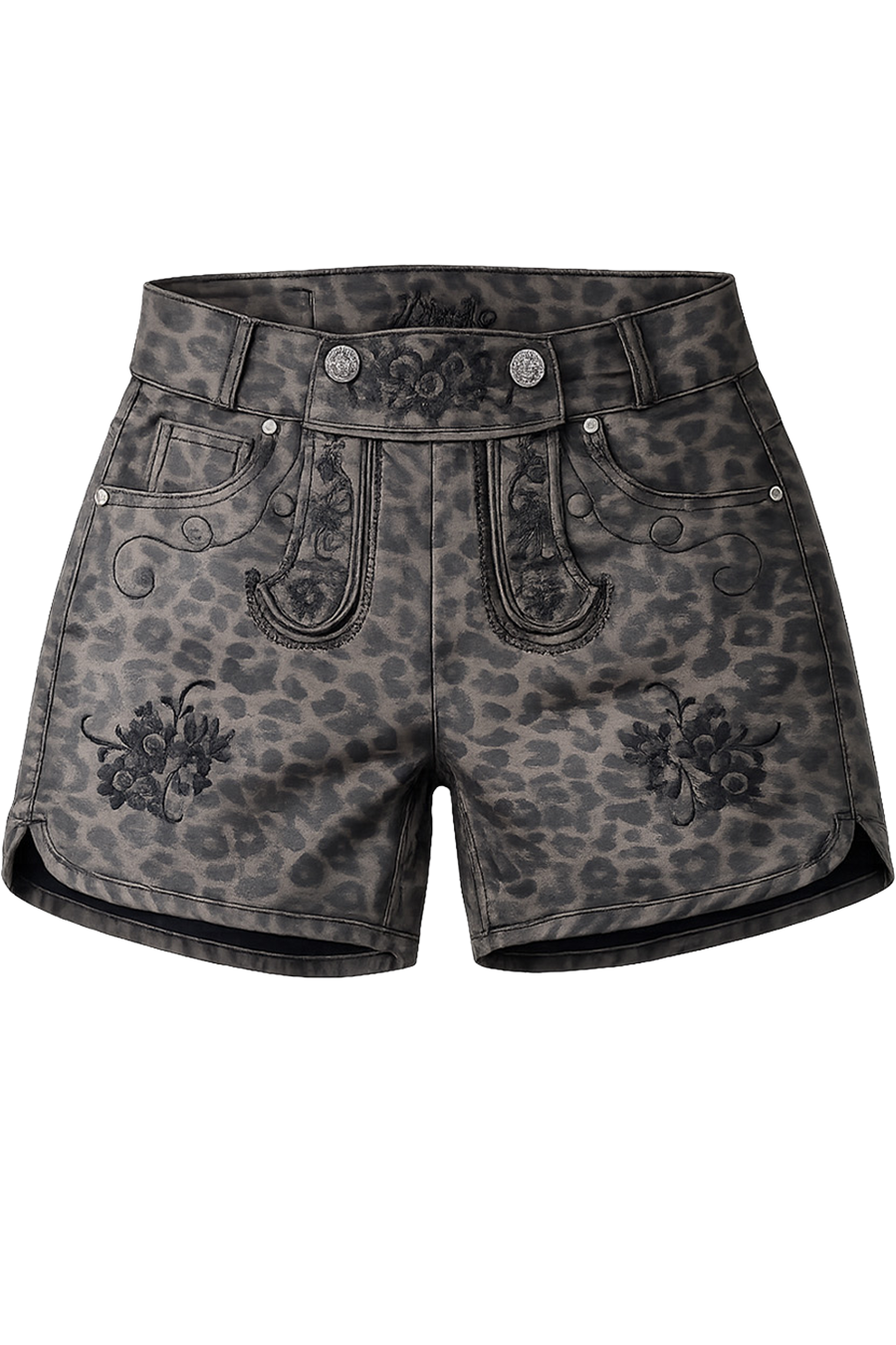 Damen Longshort im Lederhosen-Stil mit Leoprint