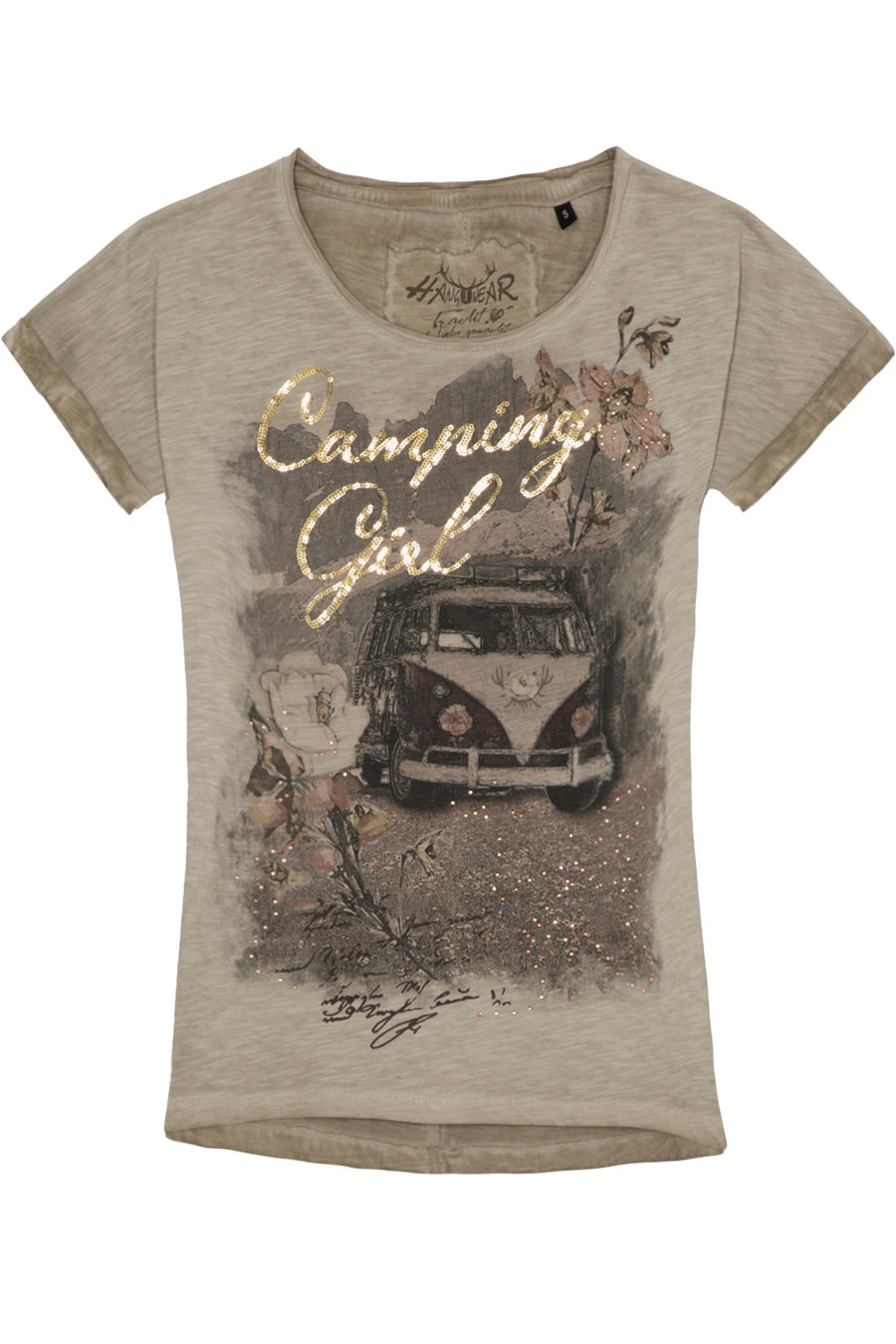 Damen T-Shirt 'Camping Girl' mit Pailletten