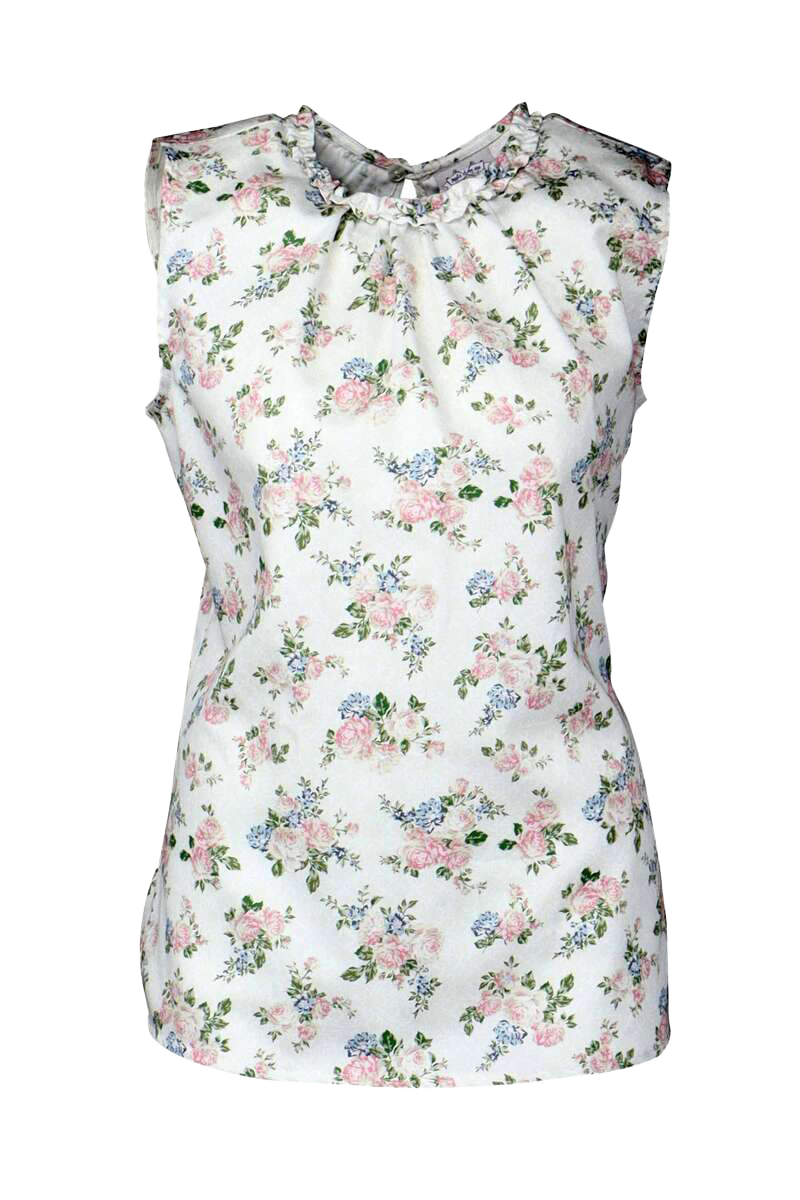 Sind Sie schon aus dem Dornröschenschlaf aufgewacht? Dann kann es ja losgehen auf das nächste tolle Sommerfest.Denn diese schicke Trachtenbluse ohne Ärmel ist aus reiner Baumwolle gefertigt und durch die hohe Atmungsaktivität der Naturfaser Baumwolle gerade im Sommer sehr angenehm zu tragen.Am Halssaum ist die Bluse mit einer romantisch-verträumten Rüsche verziert. Die romantisch-verschnörkelten, aufgedruckten Blüten in rosa-weiß und hellblau-weiß auf der gesamten Bluse erinnern wirklich stark an eine Prinzessin und unterstreichen den sommerlich-leichten Look dieser schönen Bluse.Als wunderschöne, durch den festen Stoff robuste Trachtenbluse lässt sie sich optimal kombinieren, sowohl zu einem Rock als auch zu jeder Art von Hose, ob zu einer weißen Leinenhose an besonders heißen Tagen oder zu einer Jeans im Alltag.Diese Bluse wird sicherlich Teil Ihrer am meisten genutzten Kleidungsstücke aus Ihrem Kleiderschrank werden, weil sie ungemein praktisch ist und dabei auch noch sehr schick.Die Rückenlänge in Größe 36 beträgt 62 cm.