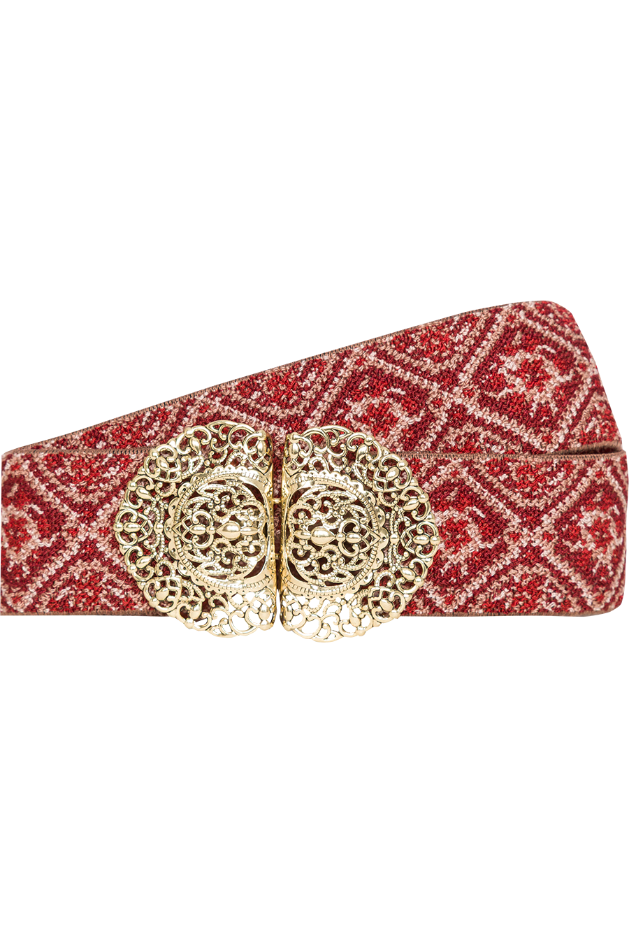 Dieser Damen Trachtengürtel von der Marke Hahn überzeugt durch seine hochwertig verzierte Schließe und den edlen, gewebten Gürtelstoff, der traditionelles Design mit modernem Stil verbindet.