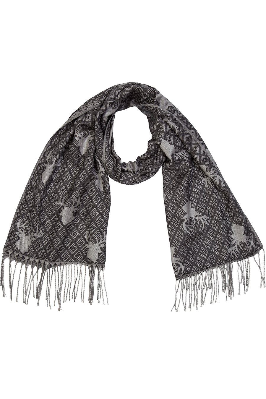 Damen Trachtentuch mit Hirschmuster und Fransen