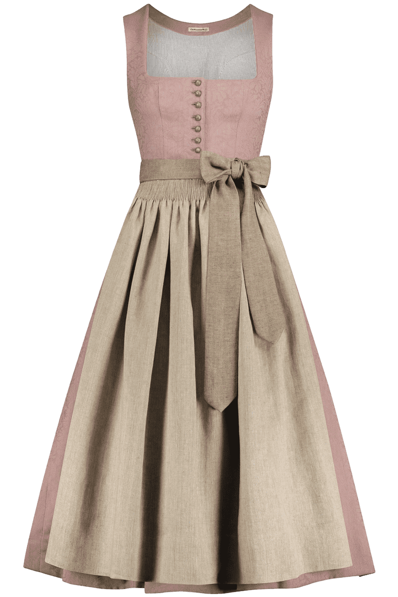 Das Dirndl MONIKA von Gottseidank in der eleganten Farbe Malve-Birke besticht durch seine zeitlose Schönheit und hochwertige Verarbeitung. Die edlen, goldfarbenen Knöpfe unterstreichen das exklusive Design und verleihen dem Dirndl eine besonders stilvolle Note.Der Rock des Dirndls hat eine Länge von 80 cm (erweiterbar auf 91 cm), was für eine elegante Silhouette sorgt. Praktische Details wie die beiden verdeckten Eingriffstaschen im Rockteil machen das Dirndl nicht nur schön, sondern auch funktional. Besonders hervorzuheben ist die Änderungsfreundlichkeit, da das Dirndl an den Nähten großzügig gearbeitet ist und um bis zu 2,5 Größen erweitert werden kann.Die handgestiftelte Schürze, aus 100% Leinen gefertigt, ist ein wahres Meisterwerk. Sie wird mit austauschbaren Bändern gebunden, entweder als traditionelle Schleife oder mit einer goldfarbenen Metallschließe. Diese Flexibilität verleiht dem Dirndl eine individuelle Note, je nach Anlass und persönlichem Stil.Hergestellt aus einer hochwertigen Mischung aus 50% Baumwolle und 50% Schurwolle, bietet das Dirndl optimalen Tragekomfort und eine angenehme Wärme - ideal für jede Jahreszeit. Der Futterstoff aus Viskose, Baumwolle und Elasthan erhöht den Tragekomfort zusätzlich.Alle Produkte und Stoffe für dieses Dirndl wurden in Europa hergestellt.