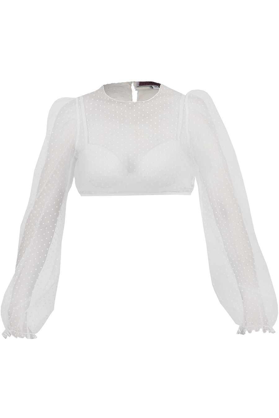 Dirndlbluse Langarm aus transparenter Spitze mit Puffärmeln