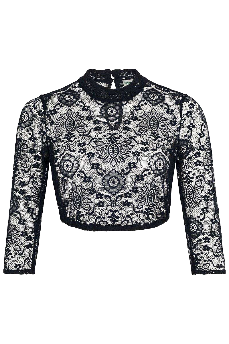 Die marinefarbene Dirndlbluse BABSI von Hammerschmid besticht durch ihre hochwertige Spitze mit Stretchanteil. Mit der Dirndlbluse wird jedes traditionelle Dirndl im Handumdrehen modern interpretiert. Auch der angesagte Ton-in-Ton-Look lässt sich mit einem gleichfarbigen Dirndl kreieren.Die Spitze ist mit einem Ornamentmuster versehen, das durch kleine Blümchen aufgelockert wird. Der hochgeschlossene Ausschnitt wird hinten geschlossen und wirkt mit dem Stehkragen besonders modern. Die 3/4-Ärmel eignen sich sowohl für wärmere als auch für kältere Tage. Das Material aus Polyamid ist sehr angenehm zu tragen und langlebig. Durch den Elasthananteil passt sich die Bluse perfekt an den Körper an. Der Gummizug am Saum sorgt für einen rutschfesten Sitz.