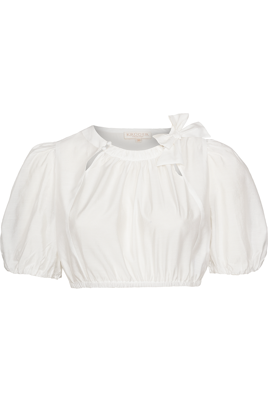 Die hochwertige Dirndlbluse von Krüger überzeugt mit ihrem edlen, hochgeschlossenen Design und liebevollen Details. Eine seitlich platzierte Schleife am Kragen sowie zwei Knöpfe am Ausschnitt unterstreichen die elegante Optik.