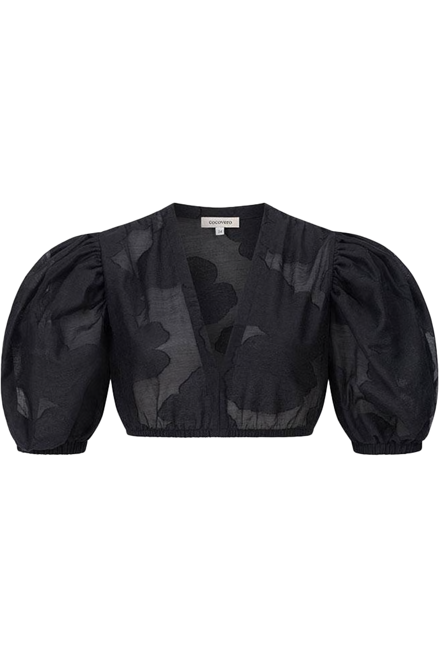 Die kurzärmlige Dirndlbluse ZENTA von CocoVero vereint schlichte Eleganz mit modernen Details. Der tiefe V-Ausschnitt setzt das Dekolleté raffiniert in Szene, während das dezente florale Muster und die weiten, gepufften Ballonärmel mit elastischem Abschluss dem Look eine verspielte, feminine Note verleihen.