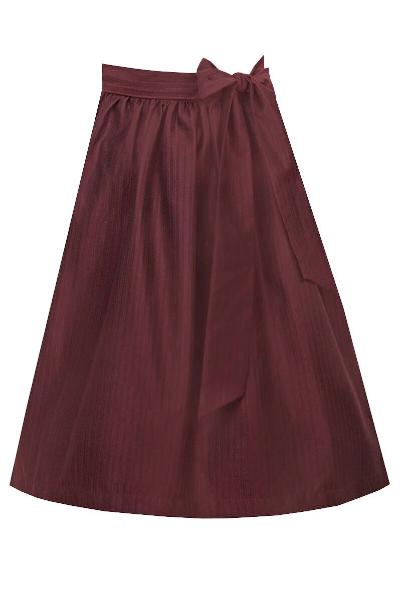 DAVINA ist eine klassische Dirndlschürze der Marke MarJo in Midilänge (70 cm). Das Webmuster ist mit verschiedenen Blumenranken verziert. Die traditionelle weinrote Farbe passt zu vielen Dirndln und kann individuell gekürzt werden. Die Schürzenbänder sind ca. 7 cm breit und können zu einer schönen Schleife gebunden werden.