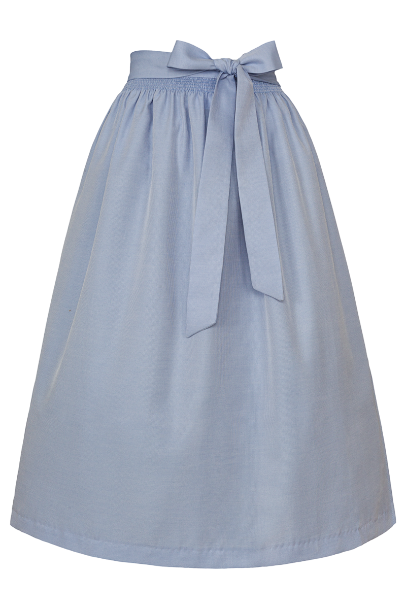 Die lange Dirndlschürze WOLGA von Wenger in der Farbe hellblau aus schimmerndem Stoff passt zu jedem Anlass und rundet den Trachtenlook zum Dirndl perfekt ab.Die Schürze wird durch 4,5 cm breite Schürzenbänder gehalten. Die Schürze ist mit einem feinen Muster versehen und kann individuell gekürzt werden.In Größe S ist die Schürze 78 cm lang.