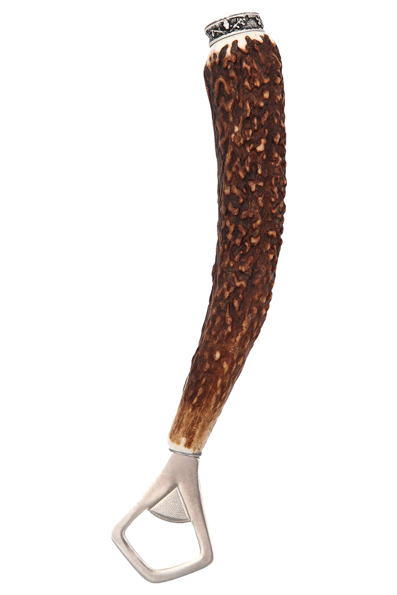 Die perfekte Alternative zum Hirschfänger in der Messertascheist ist dieser zünftige Flaschenöffner aus echtem Hirschhorngriff mit dem röhrenden Hirsch aus Feingussmetall am Griffabschluss.