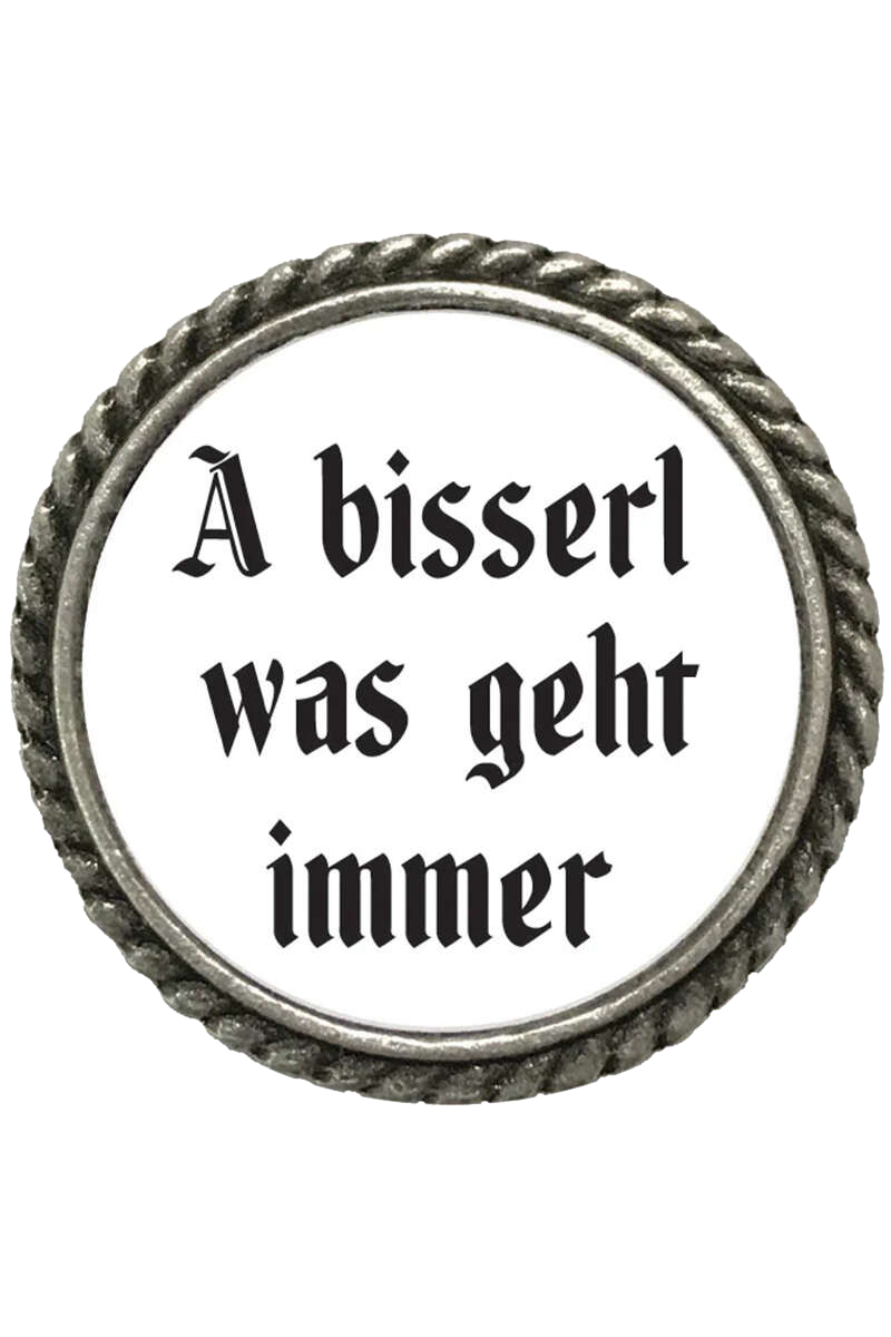 Gaudiknopf - Tradition zum Anstecken.Jeder Gaudiknopf wird mit viel Liebe zum Detail von Hand gefertigt. In einer kleinen Metallwerkstätte in Österreich werden die Anstecker im traditionellen Zinn-Schleuderguss-Verfahrens mit anschließender Galvanisierung hergestellt. Die verarbeiteten Metalle sind in Lebensmittelqualität und somit für den Träger gänzlich unbedenklich.Durchmesser: Spruch 25 mm, Anstecker 31 mm