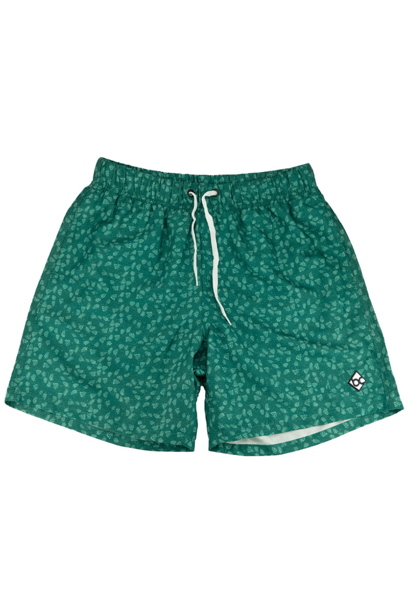 Die fesche türkisfarbene Herren-Badehose 'HOPFENERNTE' von Bavarian Caps ist allover mit kleinen Hopfenmotiven bedruckt. Der praktische Gummizug am Bund ist mit einem Kordelzug versehen, so dass die Hose perfekt sitzt und nicht rutscht. Das Innennetz sorgt für zusätzlichen Tragekomfort. Ein kleines schwarz-weißes Bavarian Caps Logo ist auf dem linken Hosenbein angebracht.Ob als Geschenk oder für den nächsten Badeausflug, diese bayerische Badehose ist immer angesagt.