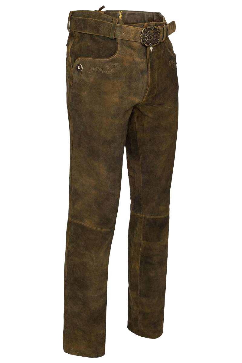 Diese schicke lange Herren-Lederhose der Marke Almsach ist aus 100% Wildbock-Leder gefertigt und zum leichteren Anziehen auch gefüttert. Neben den schicken Knöpfen in Hirschhornoptik ziert auch ein passender Ledergürtel mit traditioneller Gürtelschnalle diese Hose. Lederhosen sind sehr widerstandsfähig und man muss sie nur selten reinigen lassen. Mit zunehmendem Alter und Gebrauchsspuren wird so eine hochwertige Lederhose wie diese immer schöner und authentischer im Aussehen. Deshalb werden Sie sicher jahrzehntelang Freude mit dieser hochwertigen, bequemen Lederhose haben. Die Hosenlänge in Größe 50 beträgt 115 cm.