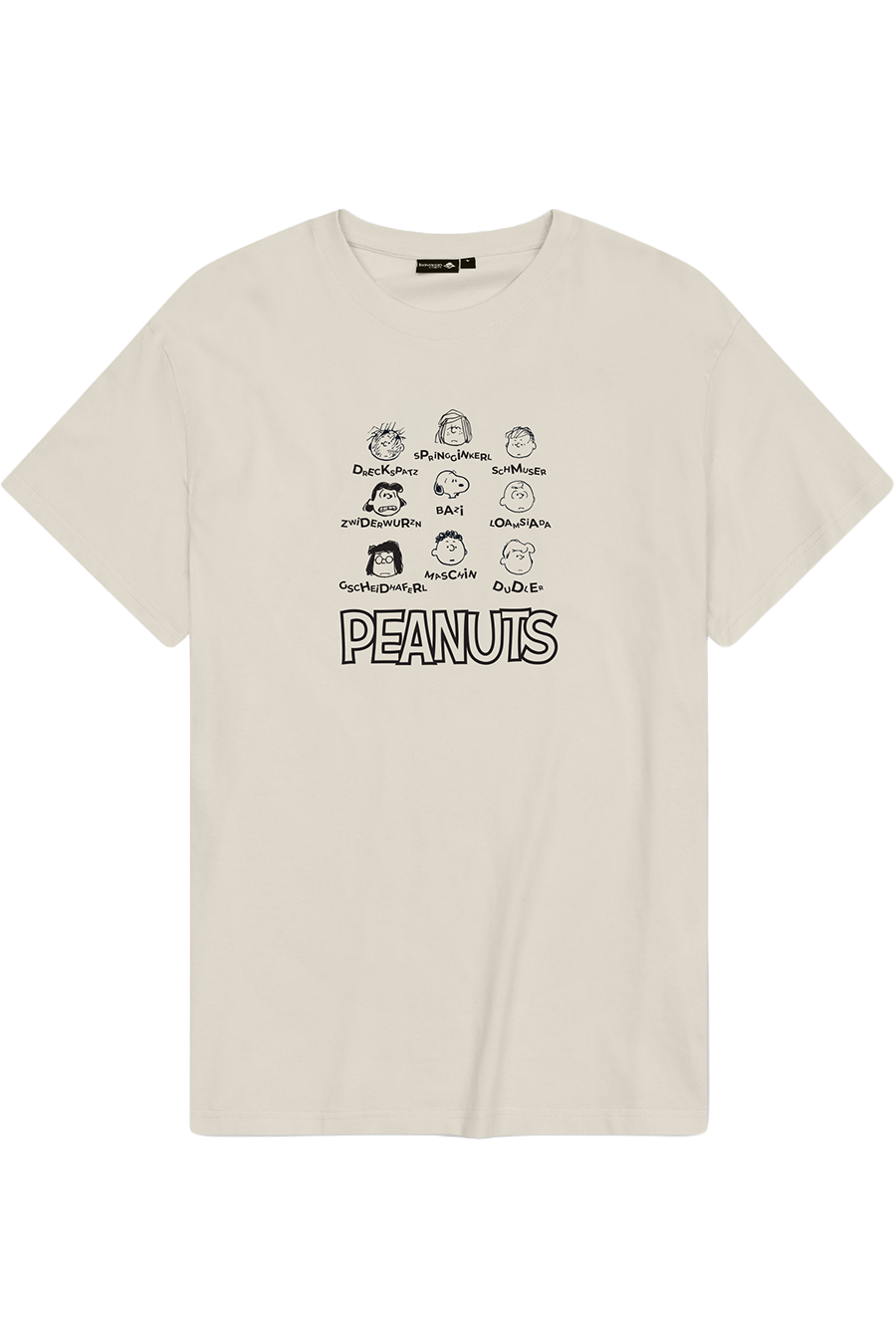 Der lockere Schnitt, der klassische Rundhalsausschnitt und die kurzen Ärmel sorgen für hohen Tragekomfort – ideal für warme Tage auf dem Volksfest oder entspannte Stunden mit Freunden. Auf der Vorderseite sorgen die Peanuts-Charaktere mit ihrer grantigen, bayerischen Beschreibung garantiert für Lacher.