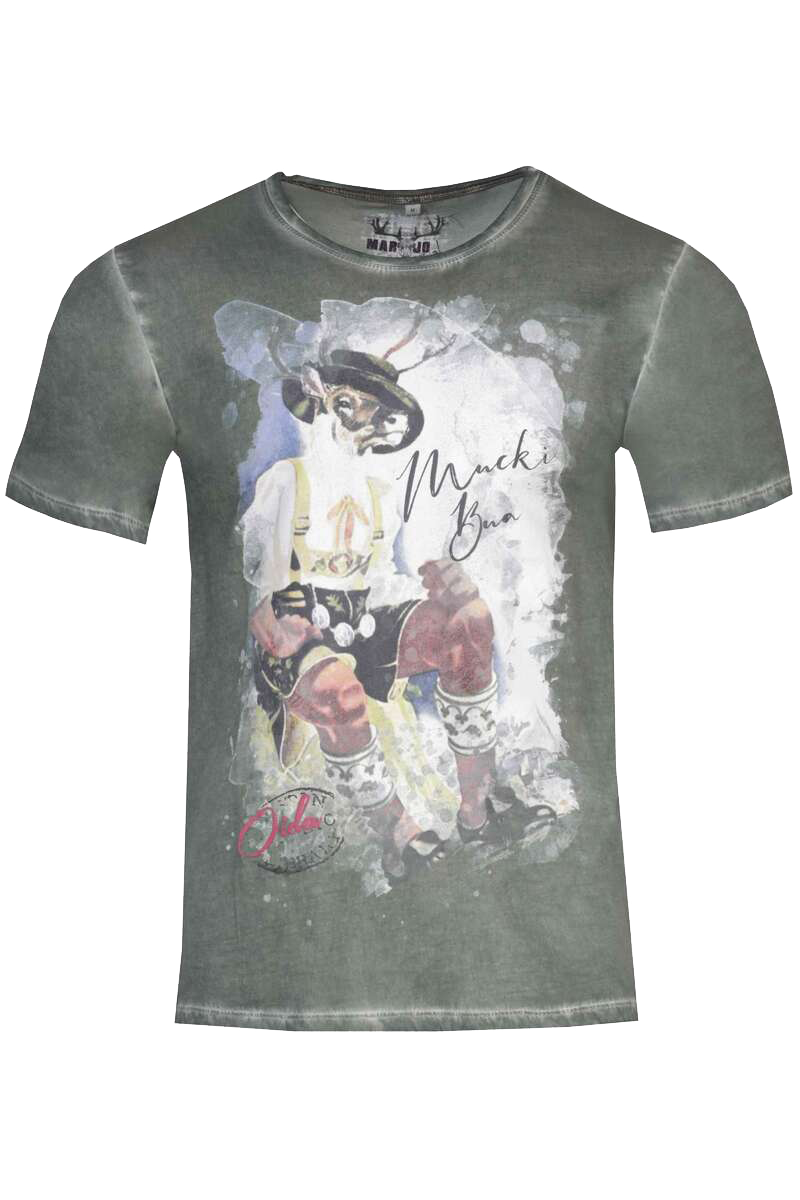 Das Herren Trachtenshirt DAVID der Marke MarJo besticht durch seine traditionelle und humorvolle Note in der frischen Farbe Lorbeer.Das Kurzarmshirt in Jersey-Qualität ist in einer angesagten Vintage-Waschung gehalten. Passend dazu das Motiv, das auf dem weißen Hintergrund besonders gut zur Geltung kommt: Der Mucki Bua sitzt gemütlich in seiner Tracht. Der Kopf des Stieres ist mit einem Trachtenhut bedeckt. Ob jung oder alt - dieses Shirt ist für alle gemacht und kann sowohl im Sommer als auch im Winter getragen werden. Kombiniert mit Lederhose oder Jeans im Alltag ist es das perfekte Trachtenoutfit.Die Rückenlänge in Größe L beträgt 70 cm.