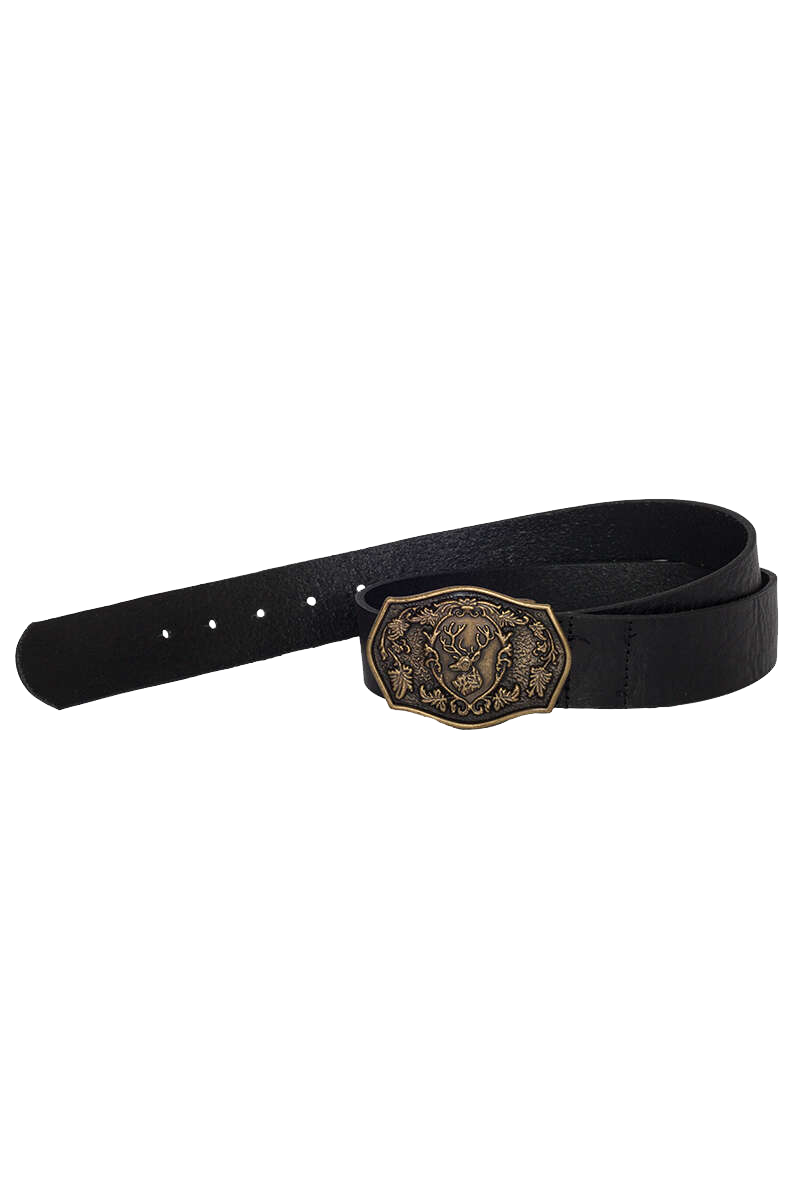 Dieser schicke schwarze Trachten-Gürtel für Herren der Marke Spieth & Wensky ist aus sehr robustem, dickem Rindsleder in hoher Qualität und "Made in Germany" gefertigt. Der Gürtel besteht nicht, wie bei billigen Ledergürteln oft üblich, innen aus Kunststoff und darüber einer äußerst dünnen, äußeren Lage von vielleicht einem halben mm Dicke aus echtem Leder. Sondern dieser Gürtel ist aus einem einzigen, dicken, durchgehenden Stück Rindsleder (Echtleder) gefertigt, das ca. 3mm dick ist.Dadurch ist der Gürtel von sehr hoher Qualität und wird Ihnen sicher jahrzehntelang Freude bereiten.Die Gürtelschnalle aus Metall mit eingearbeiteten Verzierungen und einem Hirschkopf-Relief macht Ihr schickes Auftreten perfekt - nicht nur zur Trachtenhose, sondern auch zu Jeans und Hemd. Denn dieser Gürtel wirkt immer hochwertig, solide und edel zugleich.
