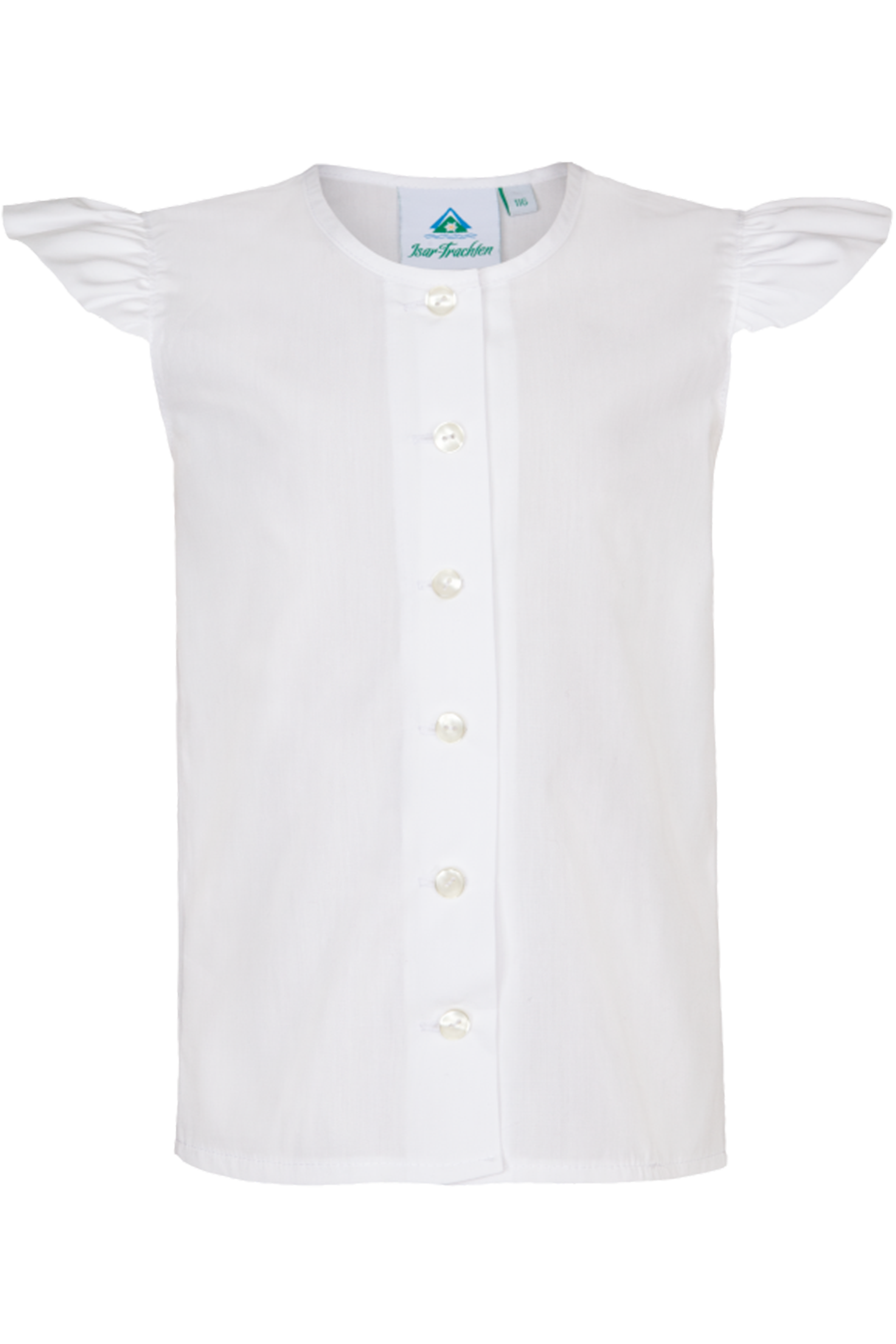 Mit dieser liebevoll gestalteten Dirndlbluse für Kinder von Isar-Trachten wird jeder Trachtenlook zum Hingucker! Die zarten Flügelärmel verleihen der Bluse eine verspielte Leichtigkeit, während der klassische Rundhalsausschnitt und die durchgehende Knopfleiste mit schimmernden Knöpfen stilvolle Akzente setzen. Dank des blickdichten Stoffs ist sie perfekt für festliche Anlässe und den Alltag geeignet. Ideal zu Trachtenröcken, zum Dirndl oder Jeans – für kleine Madl mit großem Trachtengefühl.