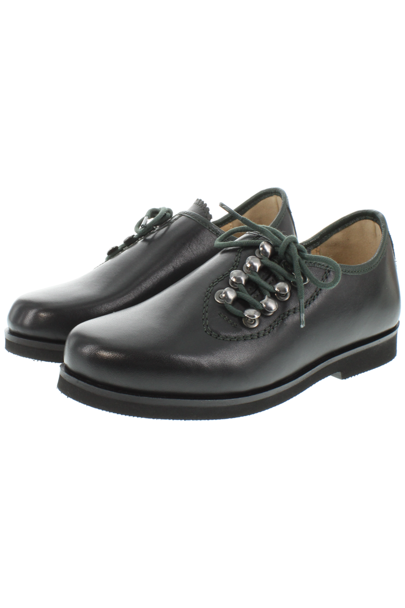 FRANZL ist ein klassischer schwarzer Kinder-Haferlschuh der Marke Xaver Luis mit dunkelgrünen Details - perfekt für kleine Trachtler. Der Oberschuh aus glattem, matt glänzendem Nappaleder ist seitlich traditionell geschnürt, mit einer gezackten Lasche versehen und dunkelgrün eingefasst. Der dunkelgrüne Schnürsenkel wird durch kräftige Metallhaken geführt. Das bequeme Fußbett und der Innenschuh sind aus tragefreundlichem Leder gefertigt. Die Leichtzellsohle dämpft zusätzlich jeden Schritt und sorgt für einen sicheren Stand.
