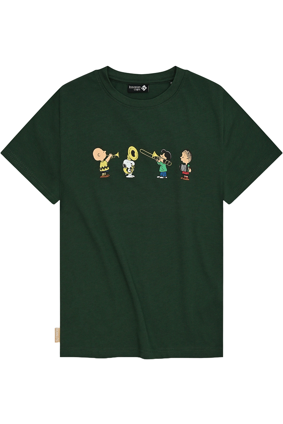 Da ist was los in der Kapelle! Mit dem Kinder T-Shirt PEANUTS BLASKAPELLE von Bavarian Caps wird's fröhlich, musikalisch und herrlich bunt. Auf der Vorderseite tummeln sich Charlie Brown, Snoopy & Co. beim gemeinsamen Musizieren – und das mit jeder Menge Spaß und bayerischem Schwung! Der farbenfrohe Druck sorgt sofort für gute Laune und ist ein echtes Highlight für kleine Trachtenfans mit Sinn für Musik, Humor und Kultfiguren.