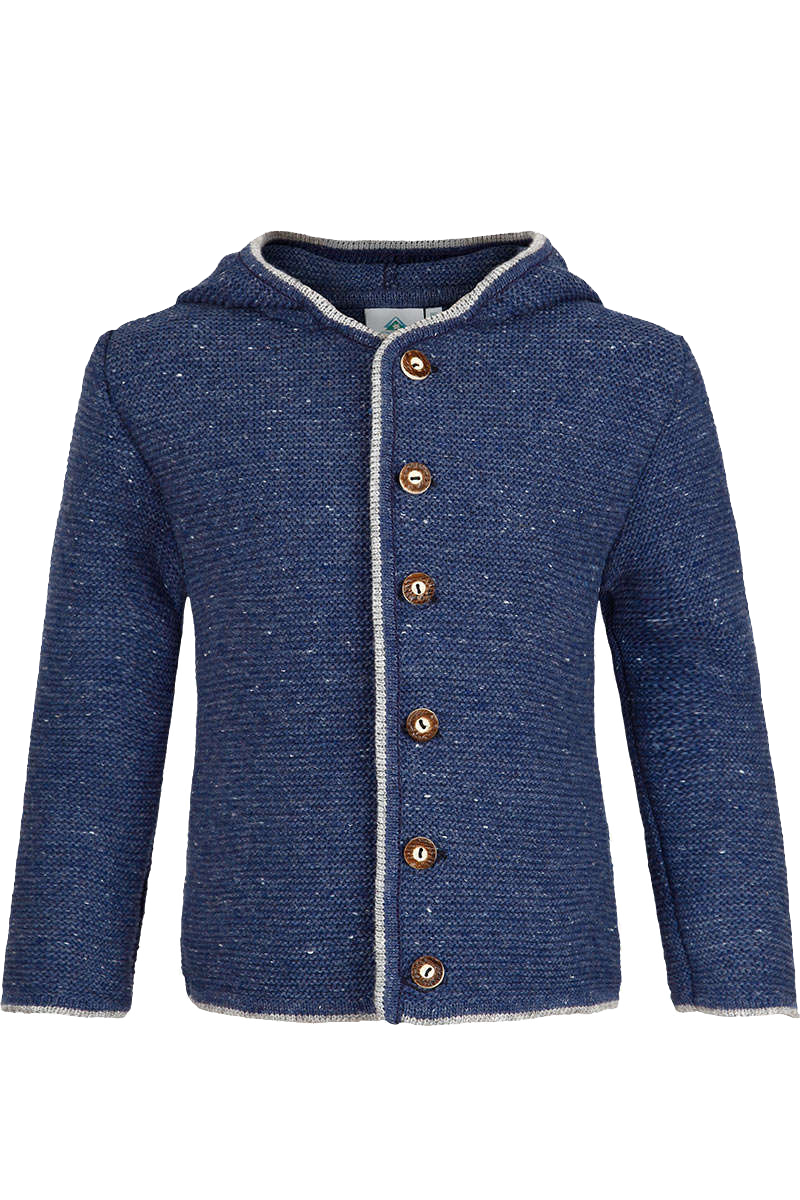 Diese trendige jeansblaue Trachten-Jacke der Firma Isar Trachten ist perfekt für kleine Trachtenfans. Hier trift Tradition auf Innovation. Die Kapuze verleiht der Jacke ihren coolen Look. Die linksgestrickte jeansblau-grau melierte Jacke ist mit einerm hellgrauen glattgestrickten Abschlußrand aufgepeppt.Ein Kleidungsstück das bei keinem kleinen Trachtler fehlen darf. Ob zur Lederhose oder zur Jeans, damit ist man immer gut angezogen.