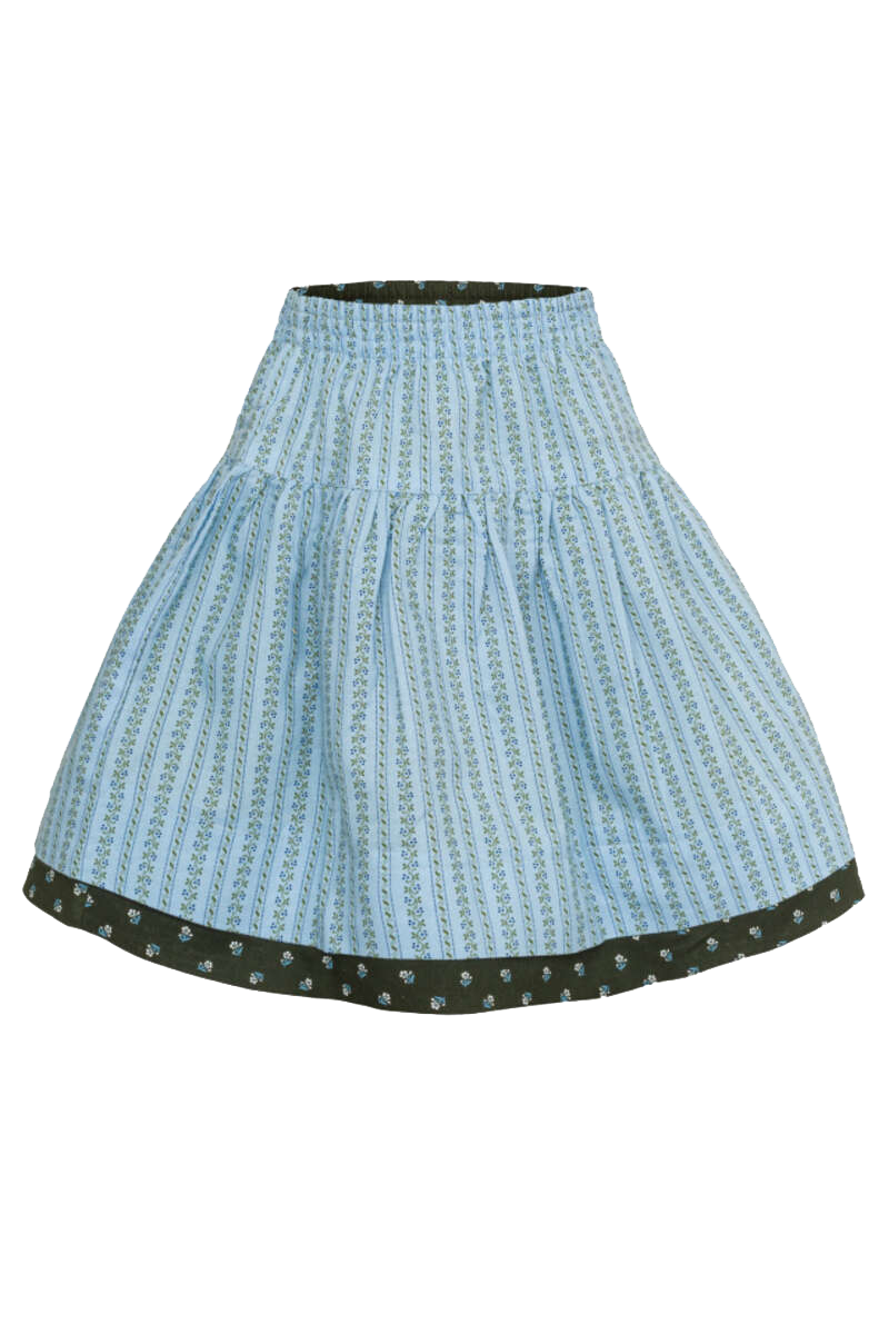 Dieser Wenderock aus reiner Baumwolle von Isar-Trachten ist das Schmuckstück für unsere kleinen Trachten-Prinzessinnen. Er kann sowohl in der Farbe Blau als auch in Grün getragen werden. Nicht nur die Farben unterscheiden sich, sondern auch die Gestaltung. Die Variante im hellen Blau ist mit einem hübschen weißen floralen Streifenmuster verziert. Grüne Akzente passen farblich zu dem Saum, der als Akzente weiß-blaue Blümchen aufweist. Die andere Seite ist in einem satten Grünton gehalten und das Material ebenso mit den Blüten geschmückt. Besonders ist die schmale weiße Spitzenborte, die den Saum ziert.Ein Gummizug am Bund sorgt für den perfekten Halt beim Spielen und Herumtoben. Die Rocklänge beträgt in Größe 116 ca. 37 cm.